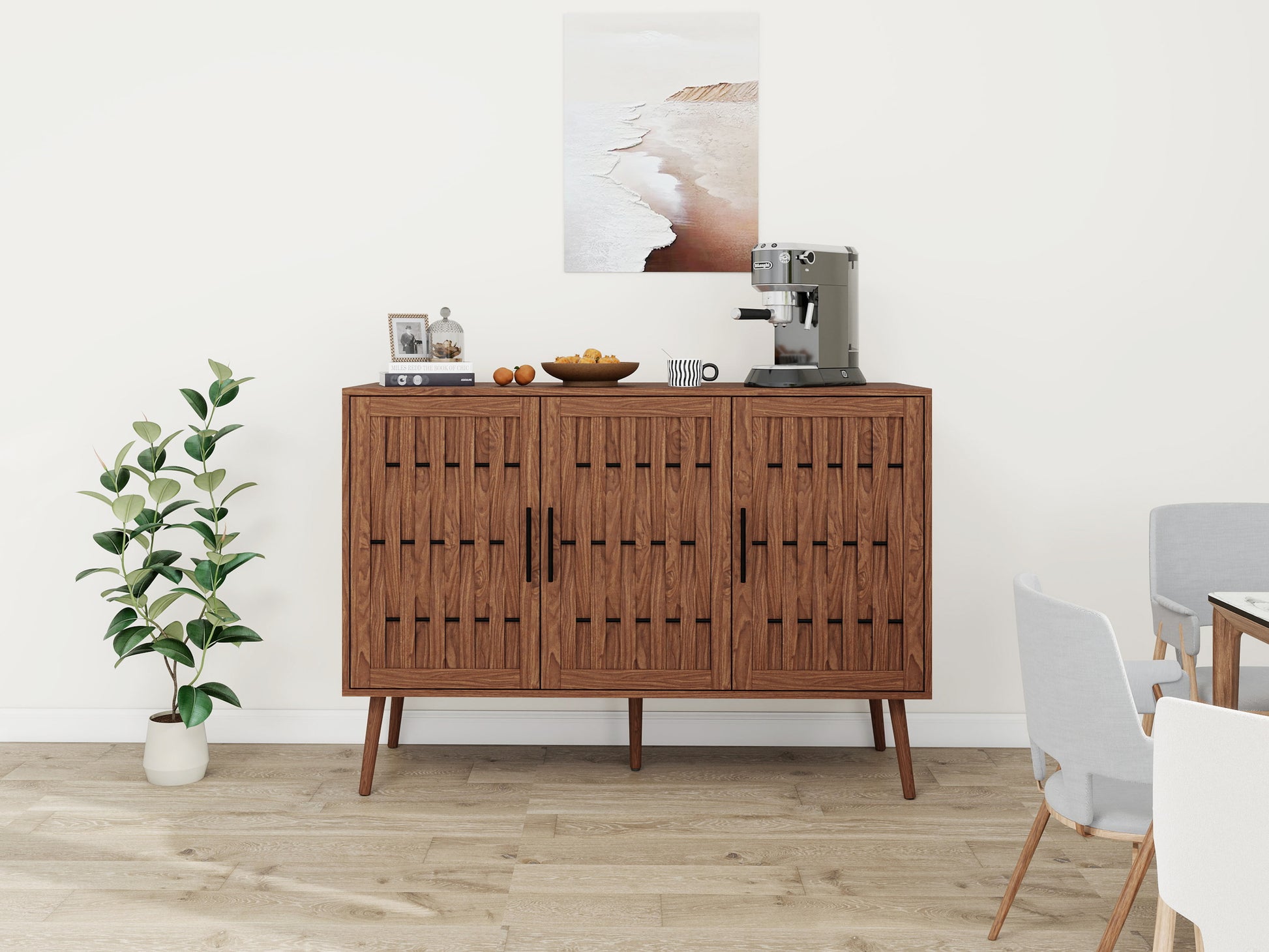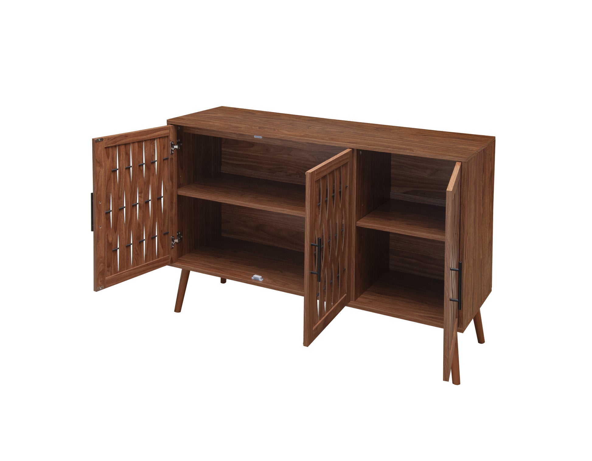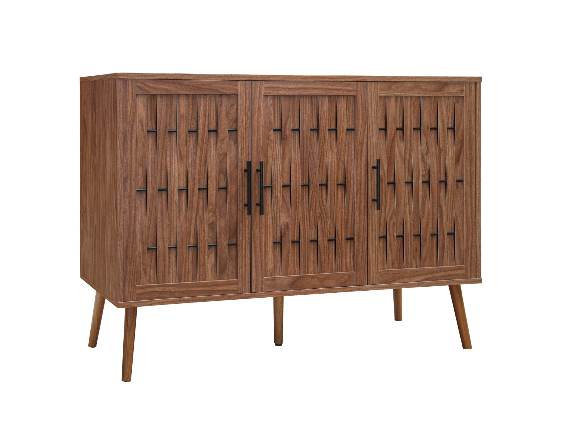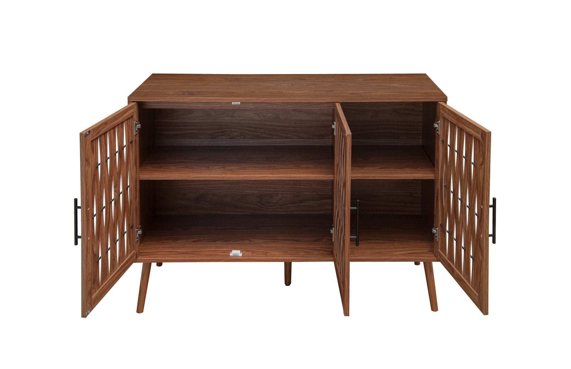 3 Door Cabinet, Accent Storage Cabinet, Suitable For Living Room, Bedroom, Dining Room, Study Walnut Mdf