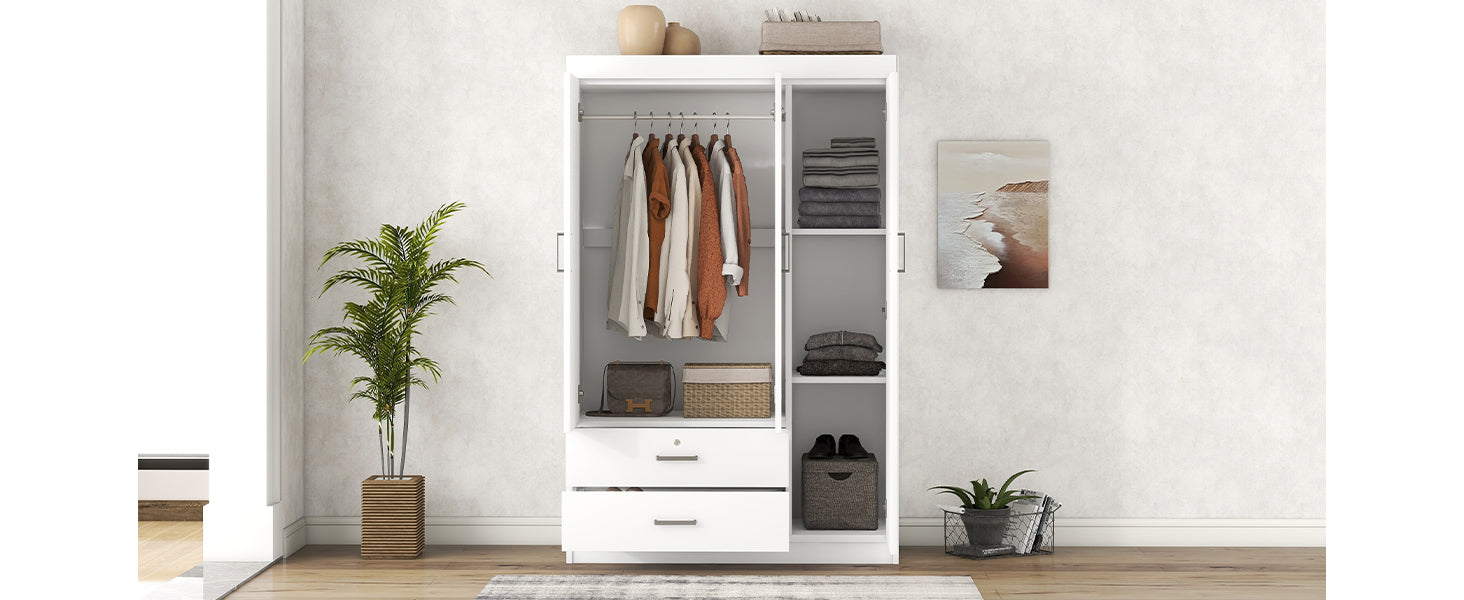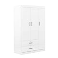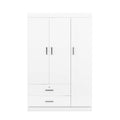 3 Door Wardrobe With 2 Drawers, White Hinged White White Shelf 2 Drawers Bedroom Ball Bearing Glides Contemporary 3 Lockable Mdf