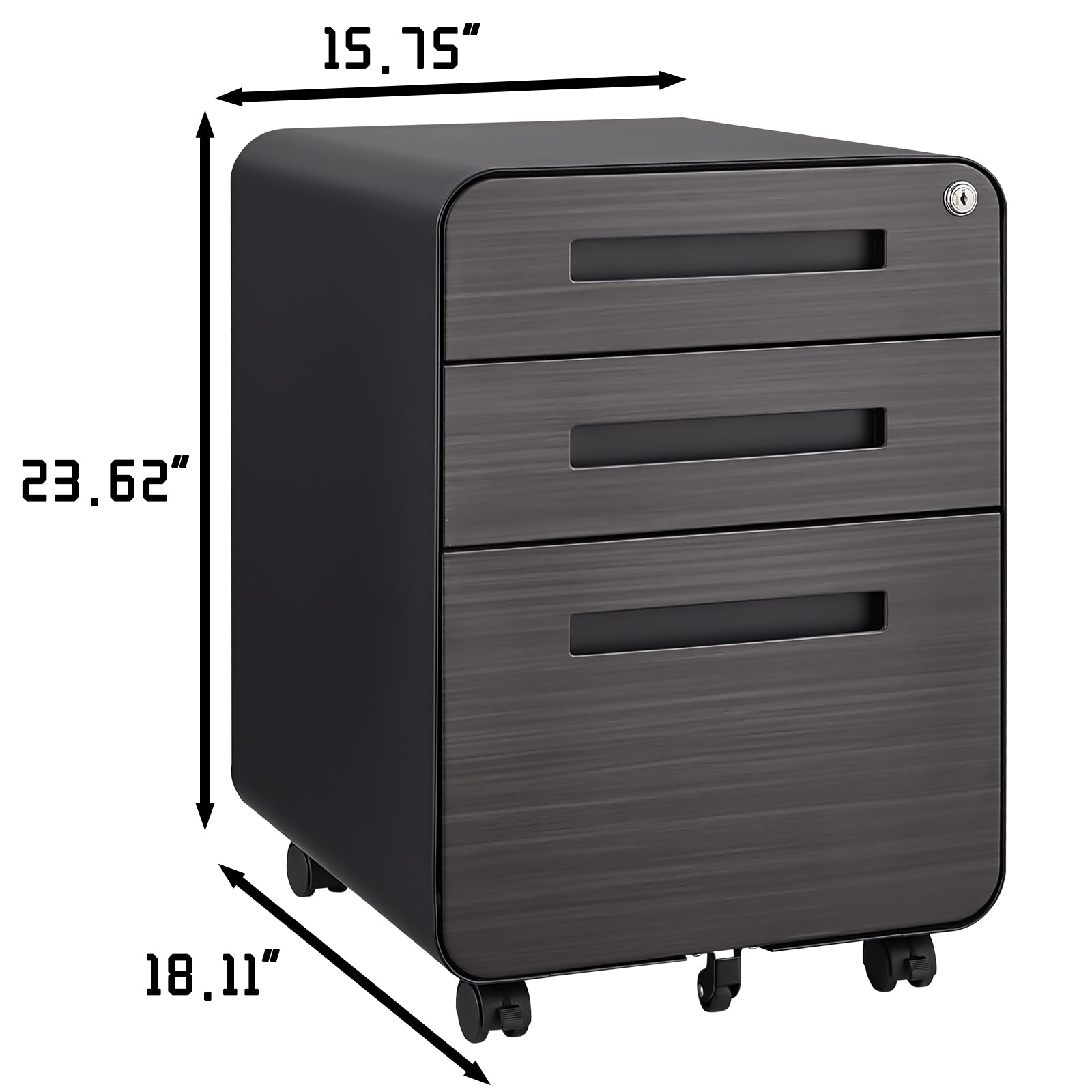 3 Drawer Mobile File Cabinet Under Desk Office,Simple Style Versatile Storage Cabinet For Legal Letter A4 Files, 5 Wheel Design Anti Tilting Cold Rolled Steel Waterproof Moisture Proof Black Filing Cabinets 3 4 Drawers Black Office Mobile Modern Metal