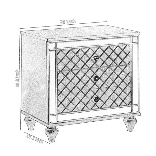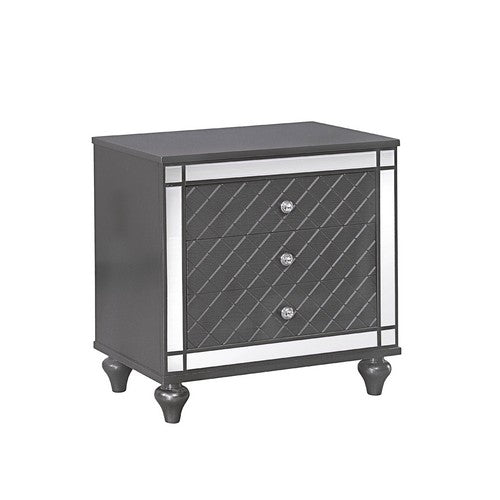3 Drawer Wooden Nightstand With Diamond Pattern And Mirror Inlay, Gray Gray Solid Wood