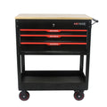 3 Drawers Multifunctional Tool Cart With Wheels And Wooden Top Black Red Metal