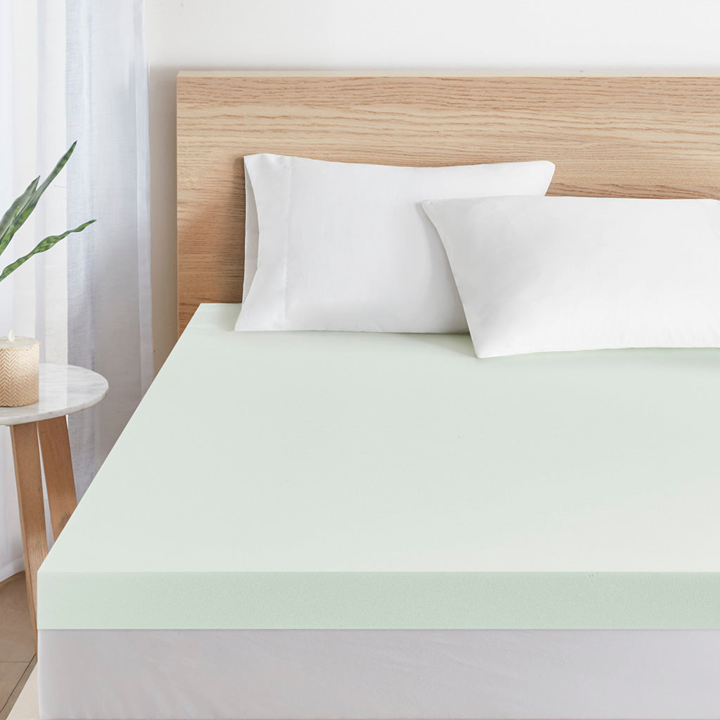 3" Green Tea Foam Topper With Cooling Removable Cover Green Polyester