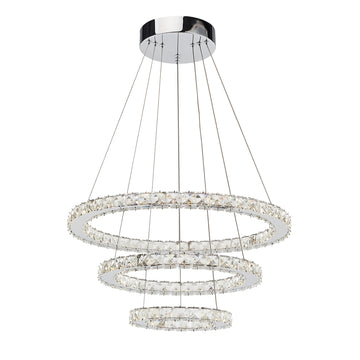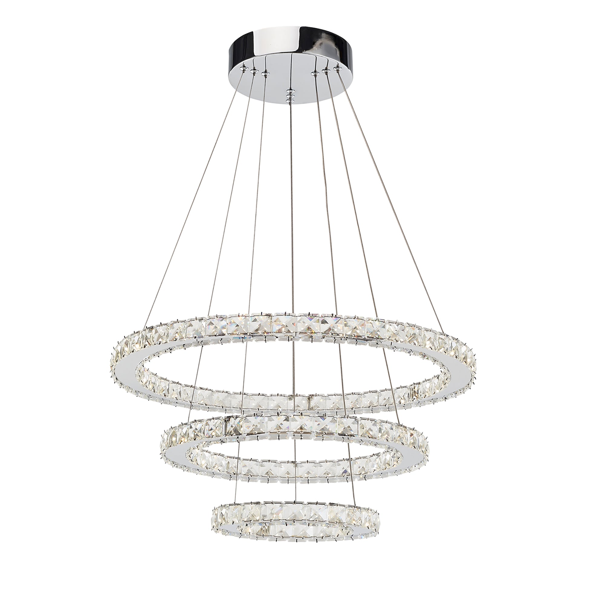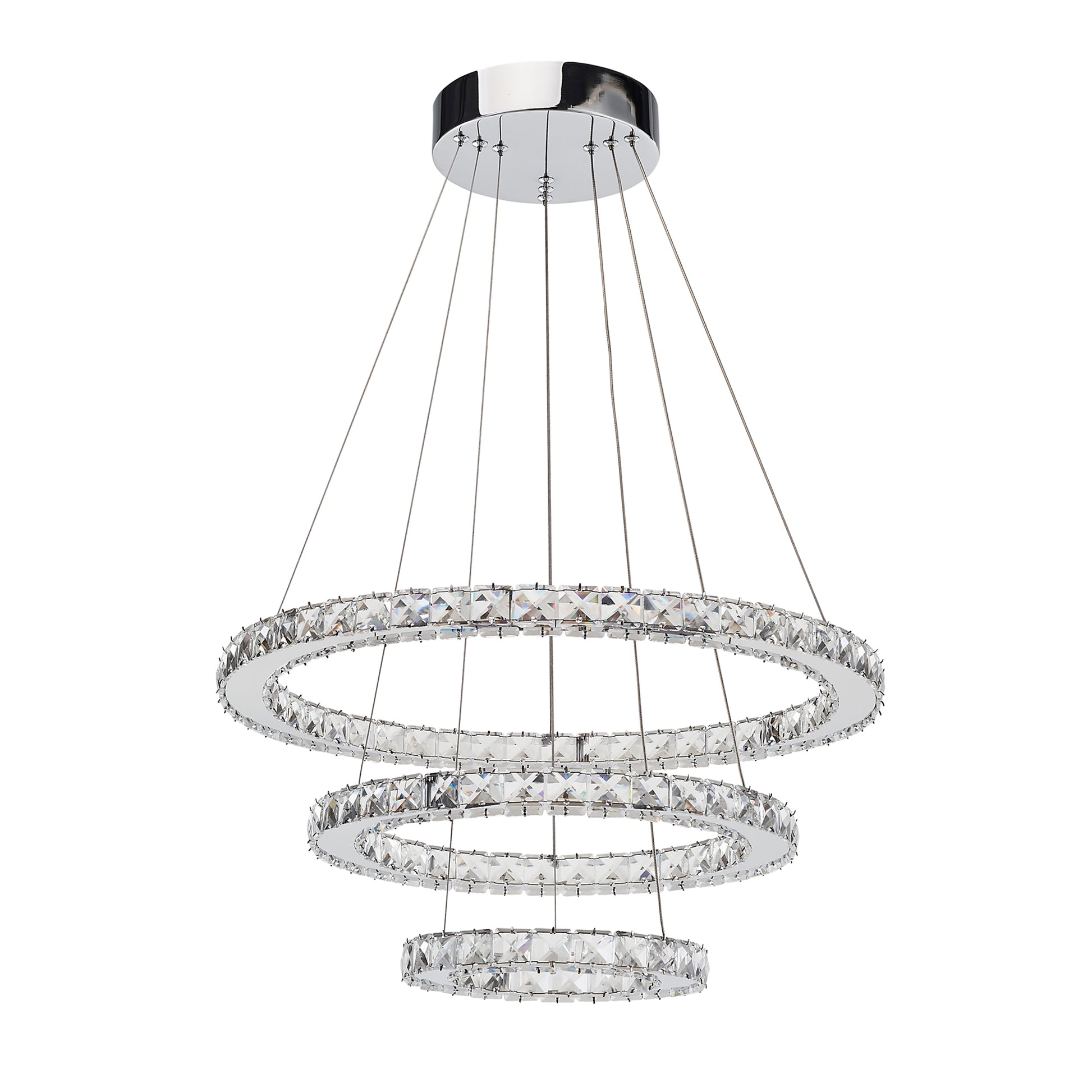 3 Layers Round Ring Chandelier, Iron Stainless Steel Crystal Chrome Color 4000K Natural White Lighting Fixtures, 60W Led Pendant Light For Living Room Dining Room Chrome Ceiling Lights 3100K 4200K