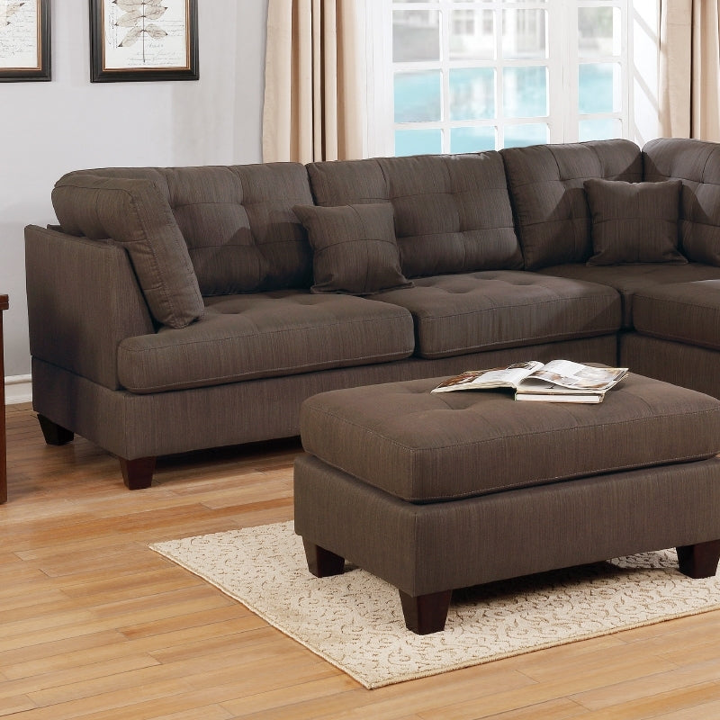 3 Pcs Sectional In Black Coffee Coffee Fabric