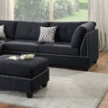3 Pcs Sectional Sofa Black Polyfiber Cushion Sofa Chaise Ottoman Reversible Couch Pillows Black Wood Primary Living Space Tufted Back Contemporary,Modern L Shaped Rubberwood Particle Board 4 Seat