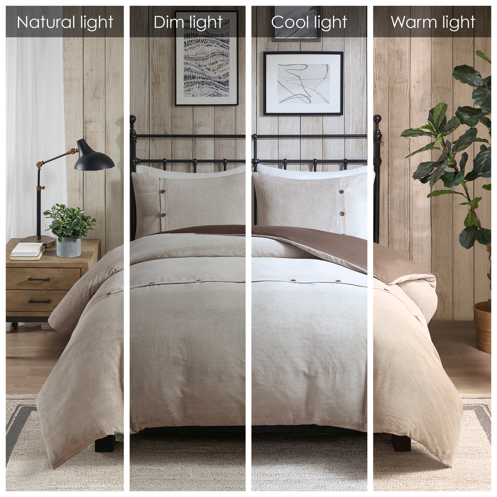 3 Piece Corduroy Duvet Cover Set Queen Tan Polyester