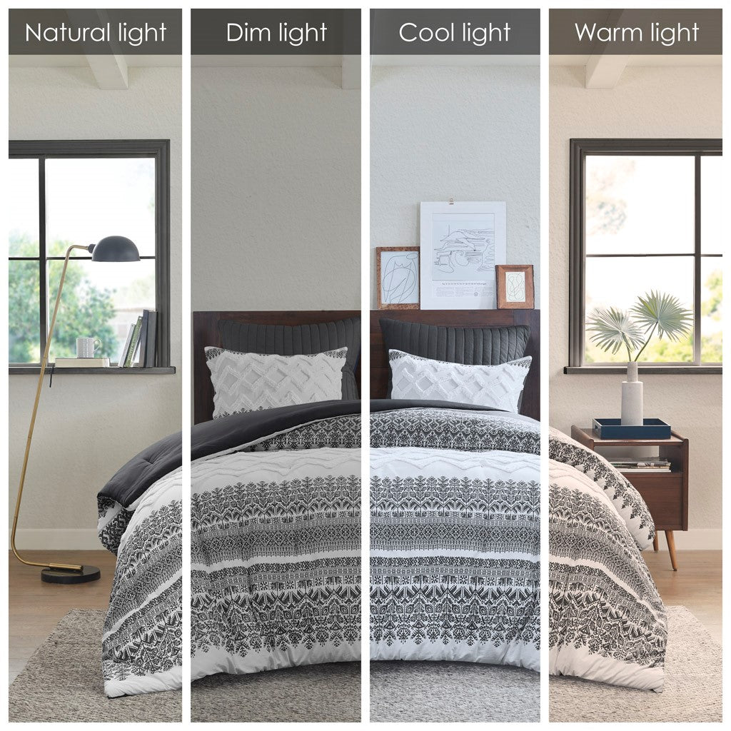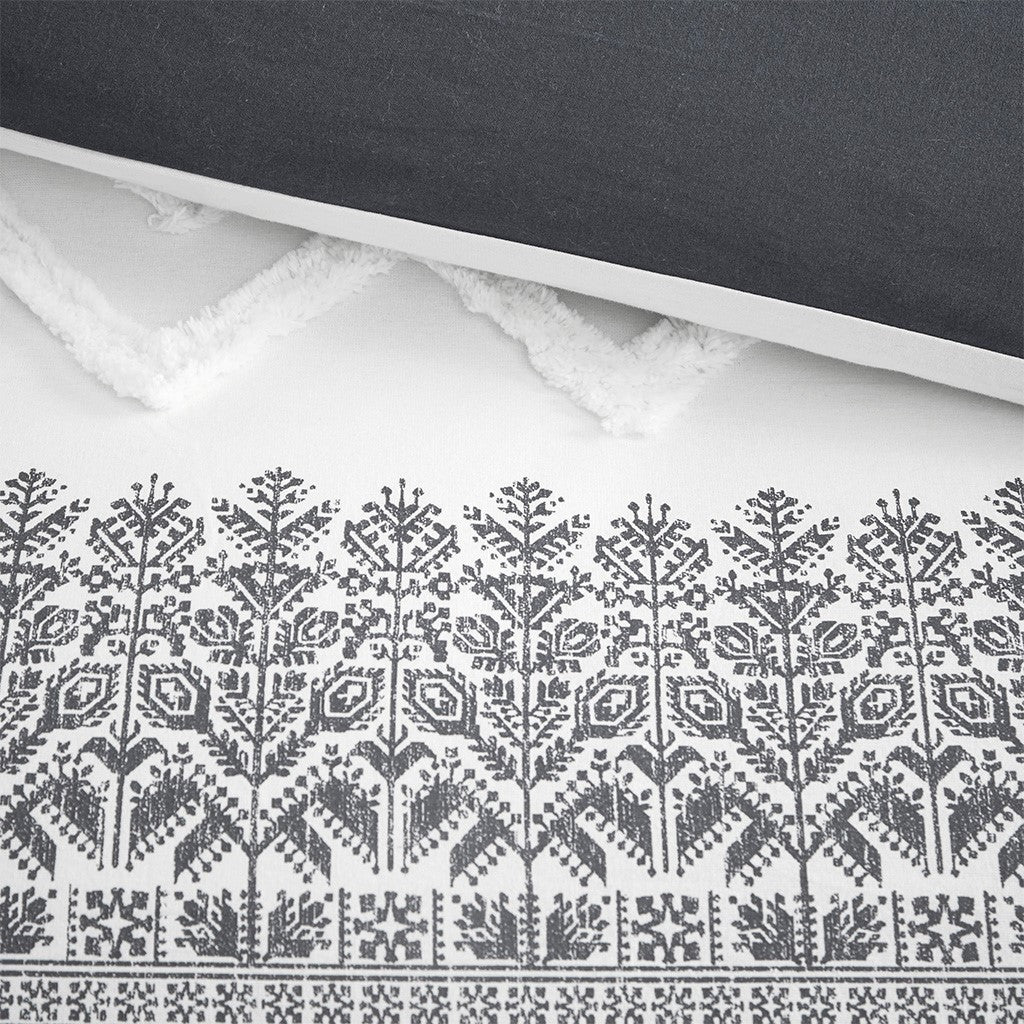 3 Piece Cotton Comforter Set With Chenille Tufting Gray Full Queen Queen Gray Cotton
