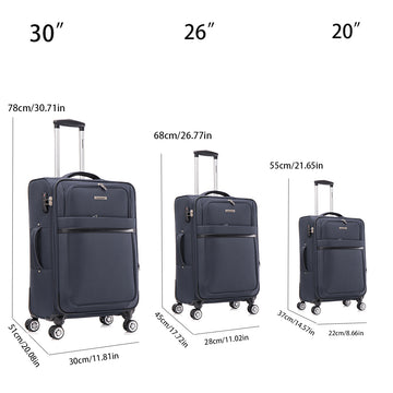 3 Piece Fabric Soft Luggage Set With Swivel Wheels And Password Lock, Dark Blue, 20 26 30 Inches Dark Blue Fabric