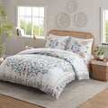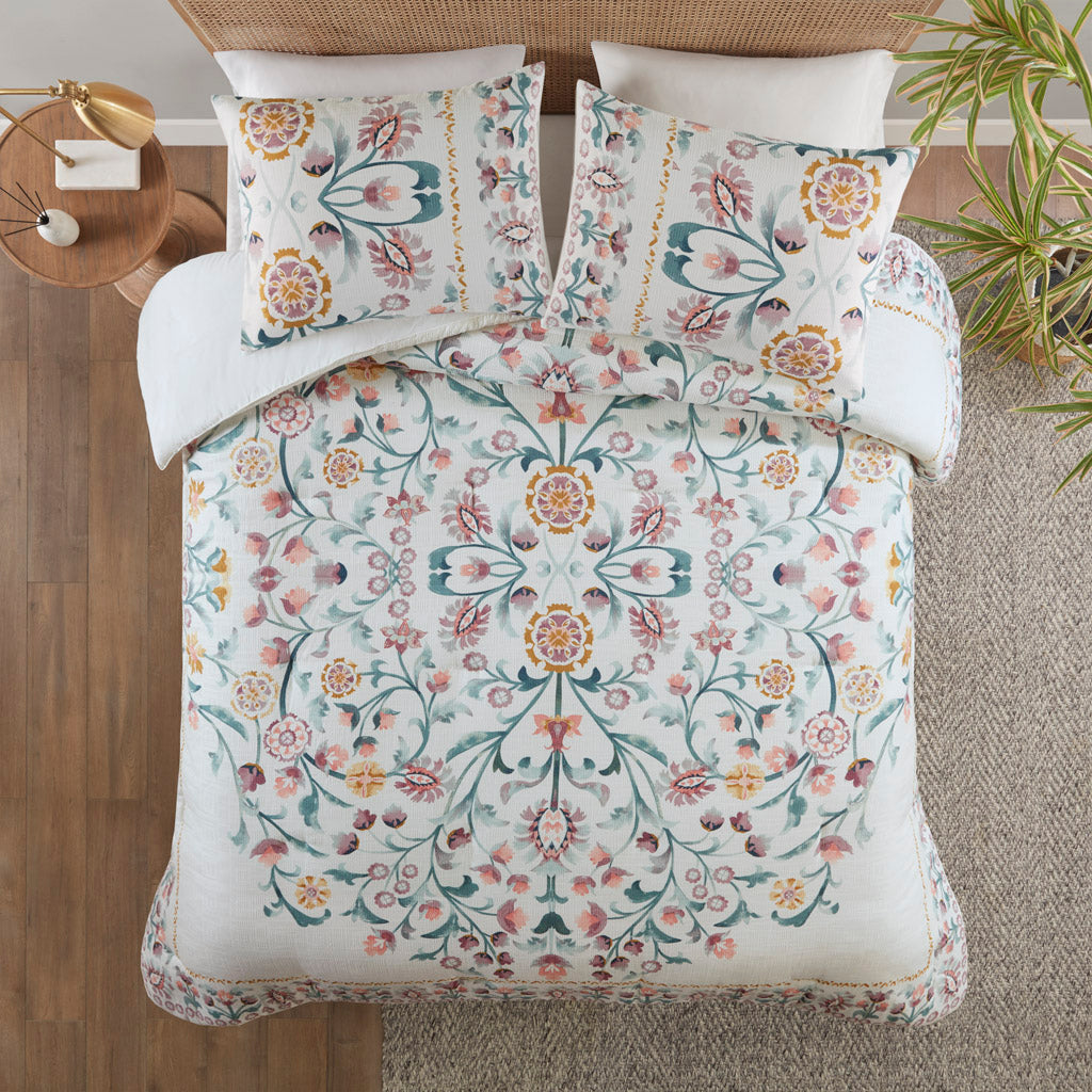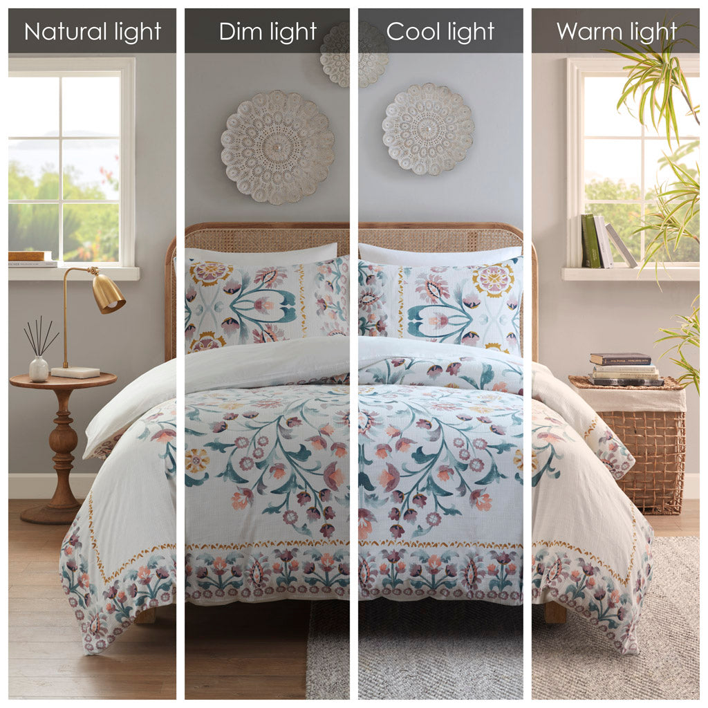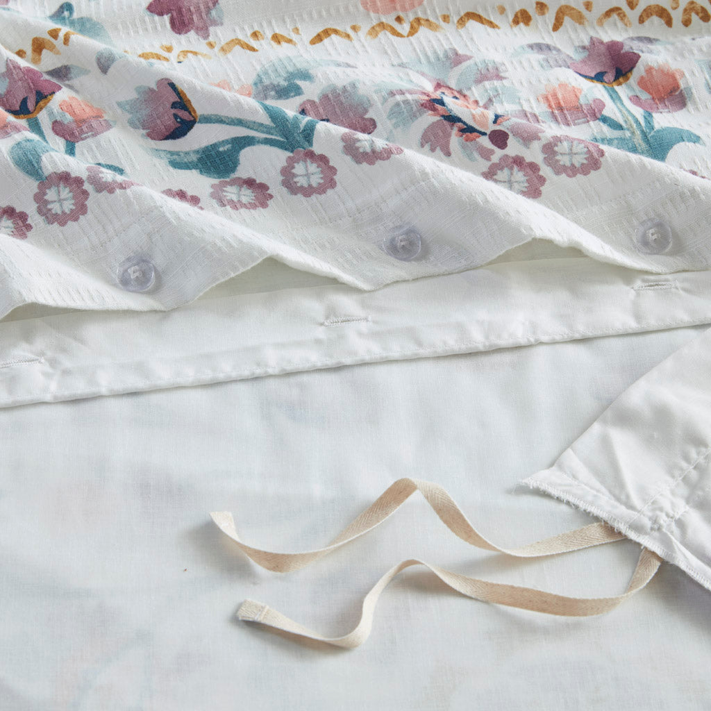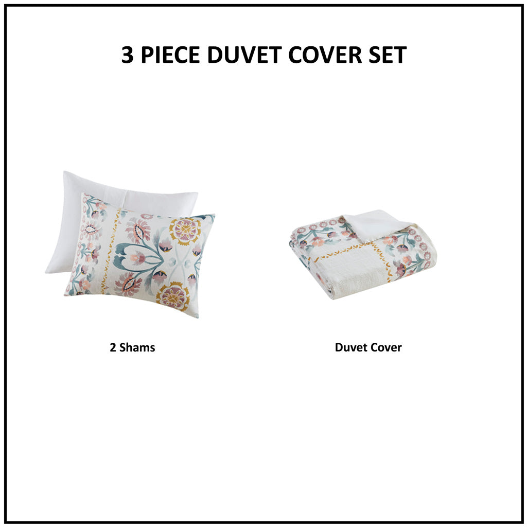 3 Piece Floral Duvet Cover Set White Multi Cotton