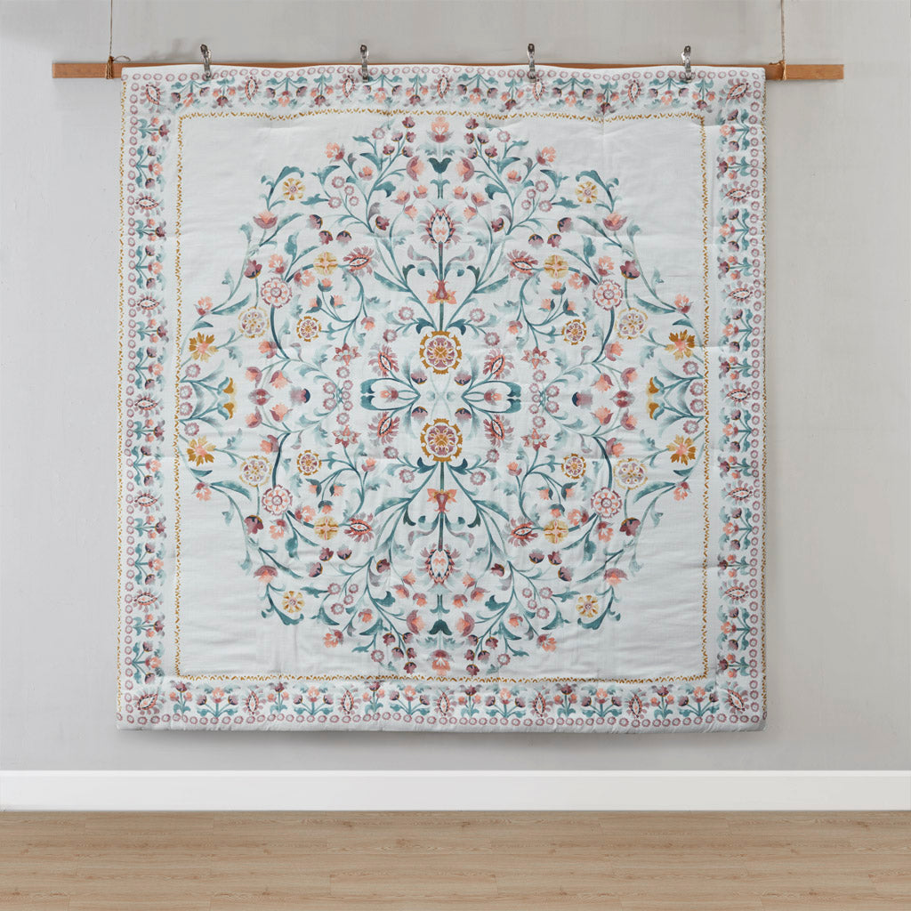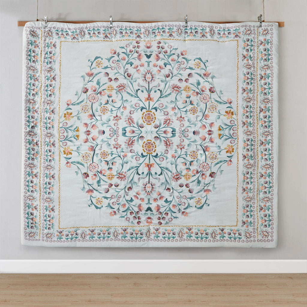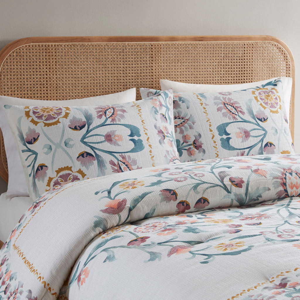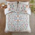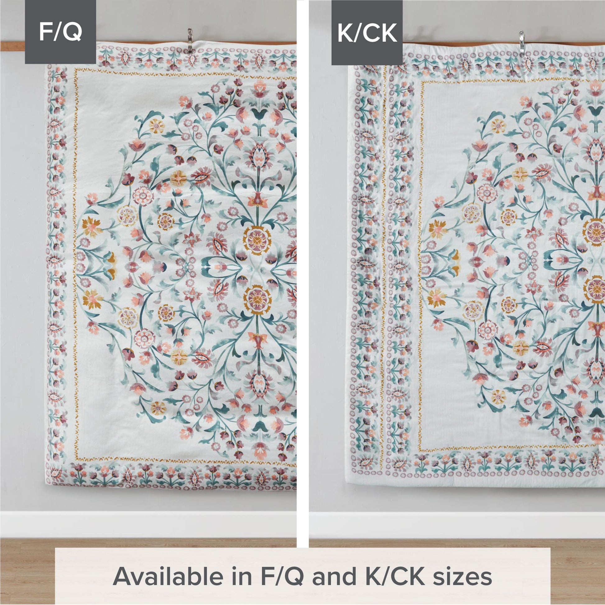 3 Piece Floral Duvet Cover Set White Multi Cotton