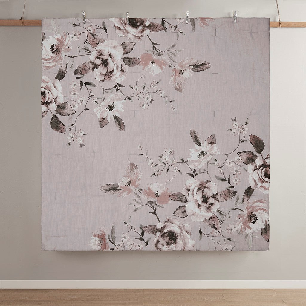 3 Piece Floral Printed Comforter Set Lilac Full Queen Full Lilac Cotton