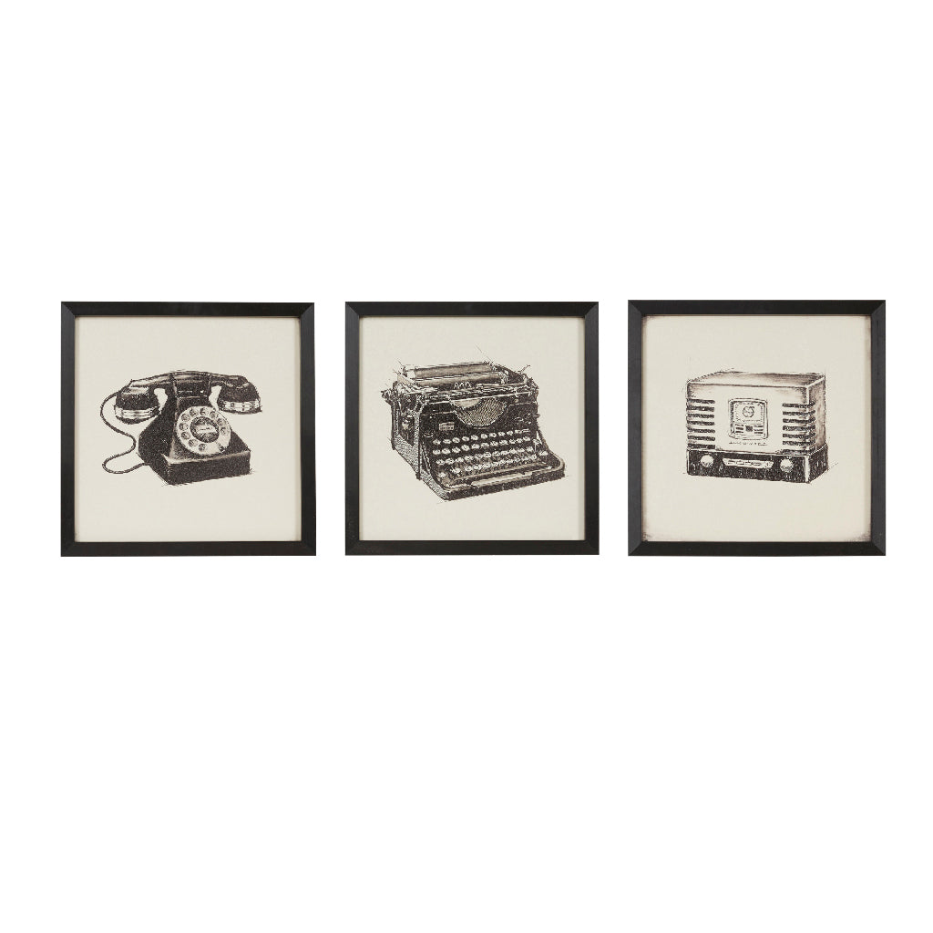 3 Piece Framed Wall Art Set Black Mdf