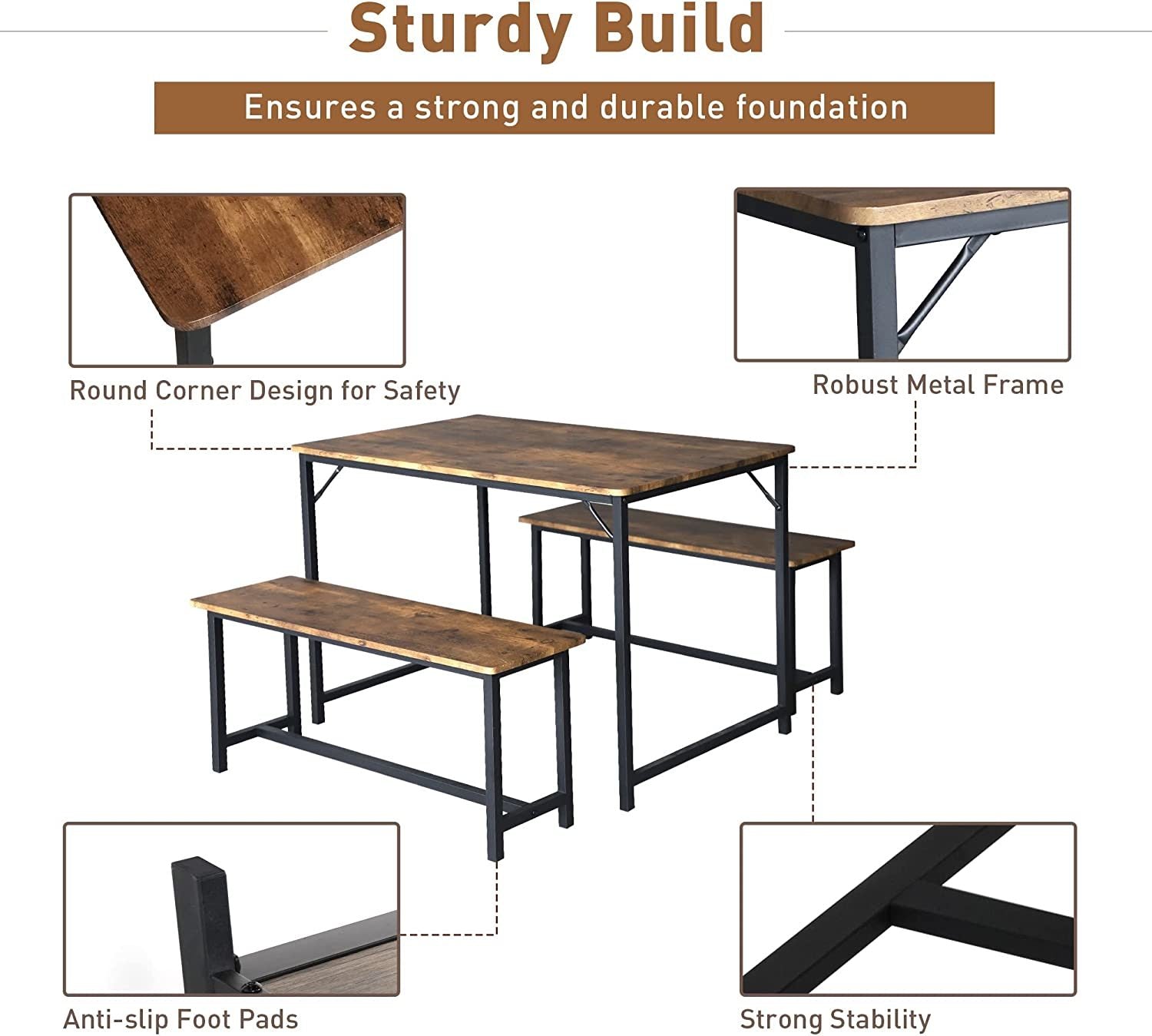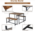 3 Piece Kitchen Table Set With 2 Benches Wood Dining Table Set For 4 Person Space Saving Dinette For Kitchen Rustic Brown Black Metal