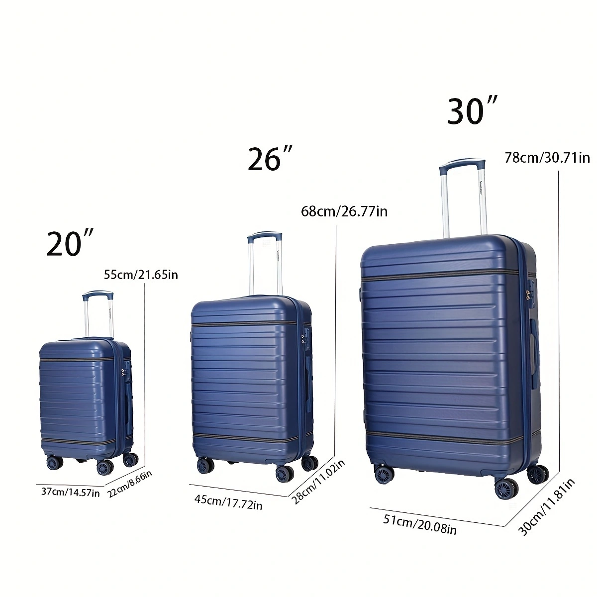 3 Piece Luggage Set, Abs Lightweight 20 Inch 26 Inch 30 Inch Luggage, Carry On Luggage Set, With Password Lock And Swivel Wheels Dark Blue Abs