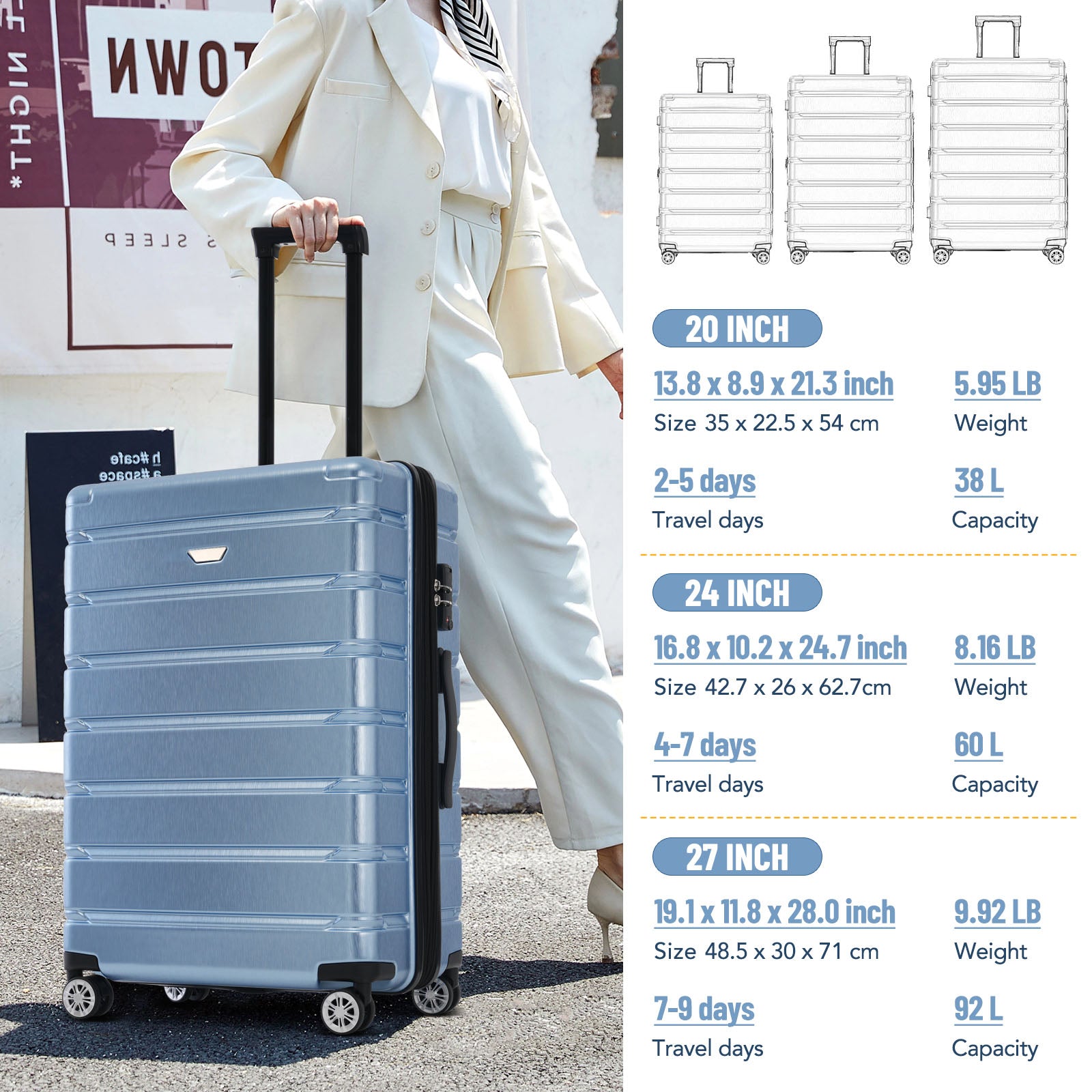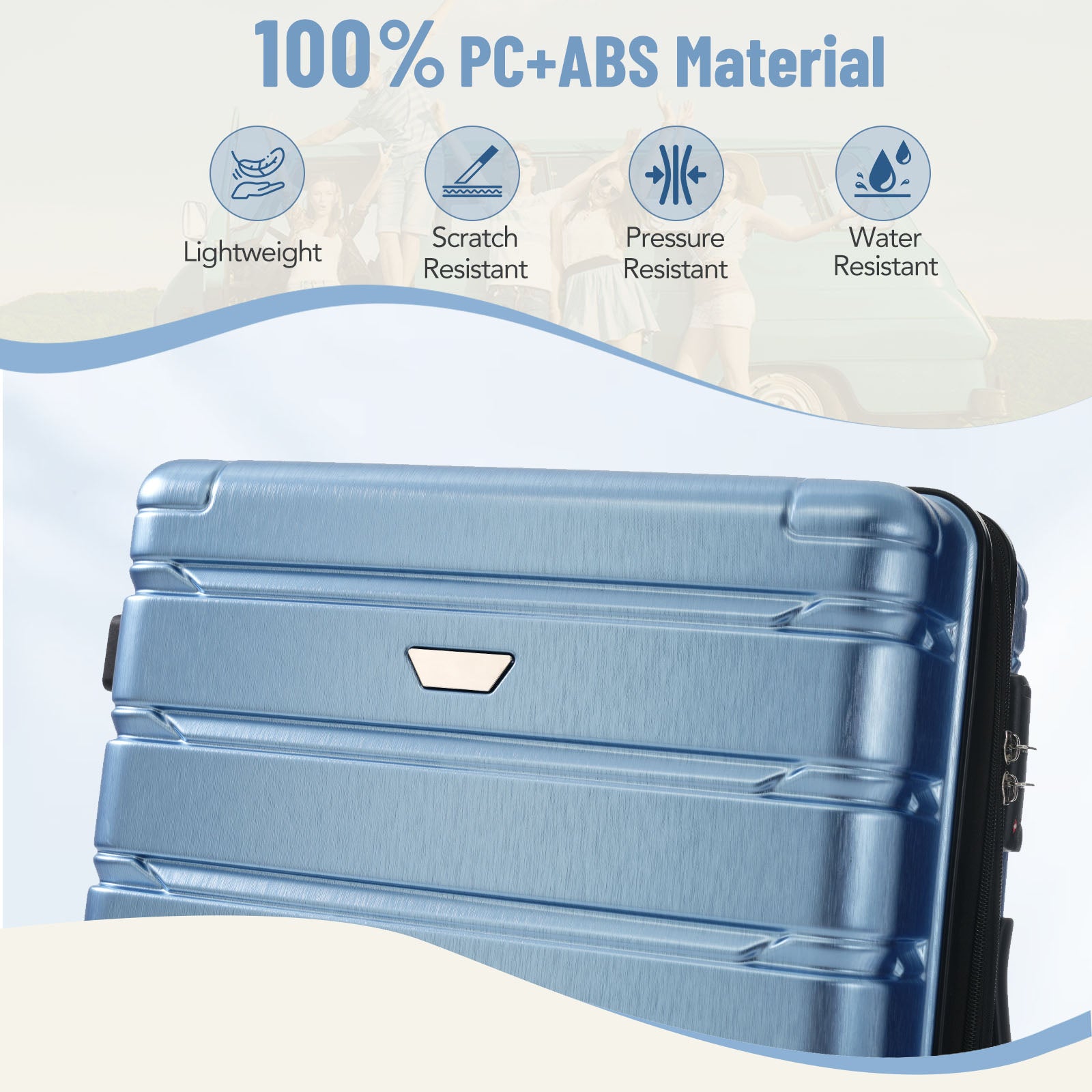 3 Piece Luggage Set Suitcase Set, Lightweight Durable Suitcase With Wheels And Tsa Lock, Expandable Travel Family Luggage For Men Women 20" 24" 27" Blue Abs Pc