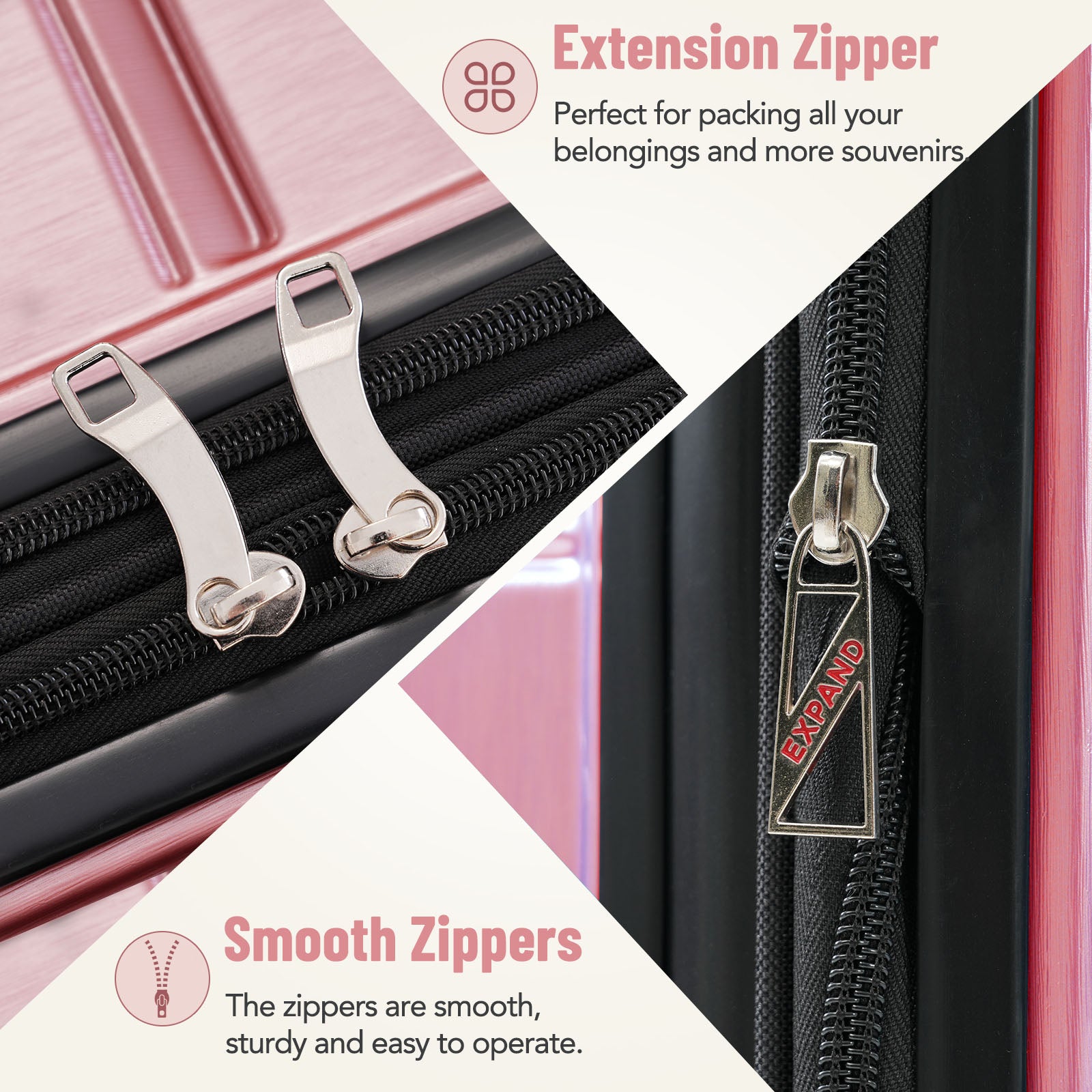 3 Piece Luggage Set Suitcase Set, Lightweight Durable Suitcase With Wheels And Tsa Lock, Expandable Travel Family Luggage For Men Women 20" 24" 27" Rose Gold Abs Pc