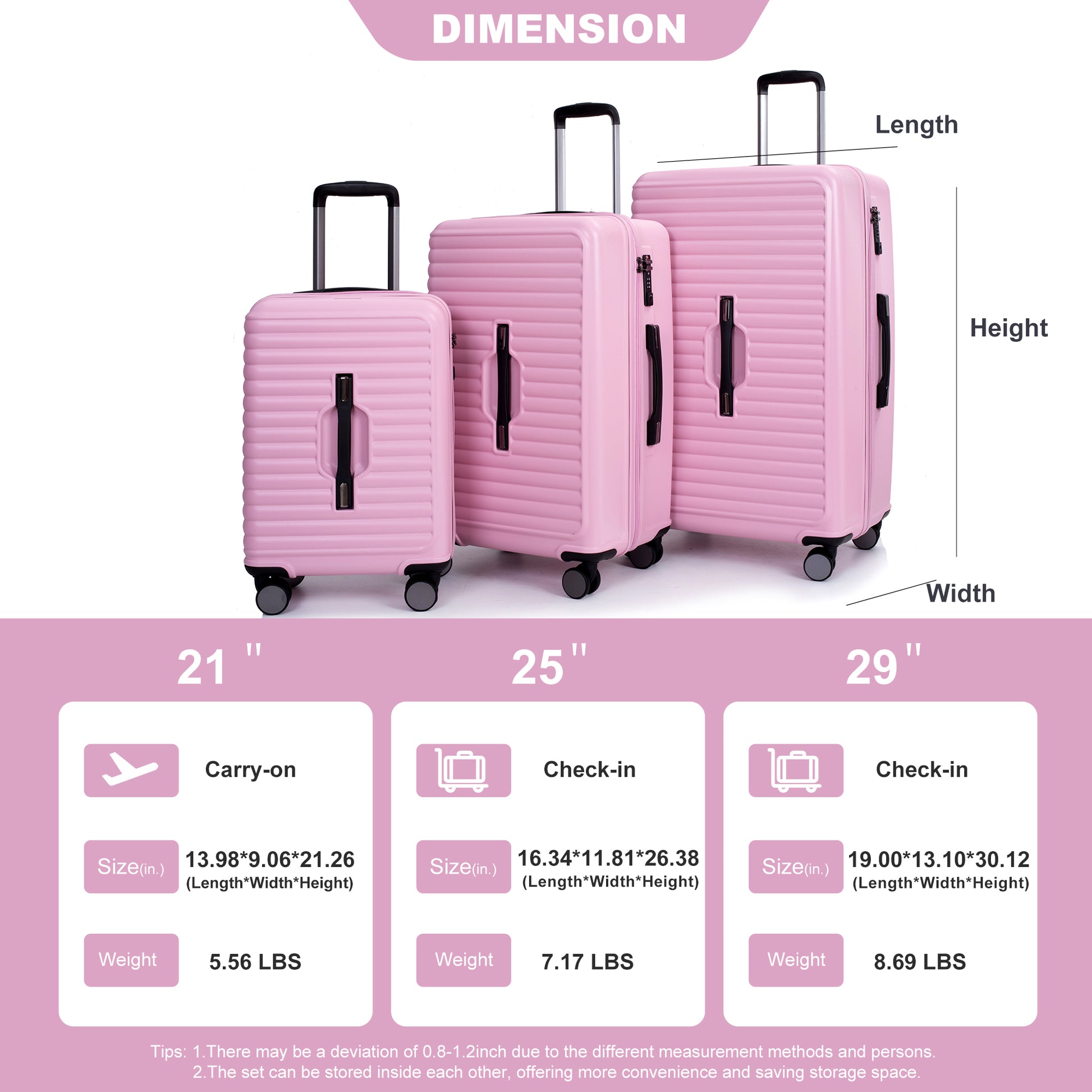 3 Piece Luggage Sets Pc Abs Lightweight Suitcase With Two Hooks, 360 Double Spinner Wheels, Tsa Lock, 21 25 29 Pink Pink Abs Pc
