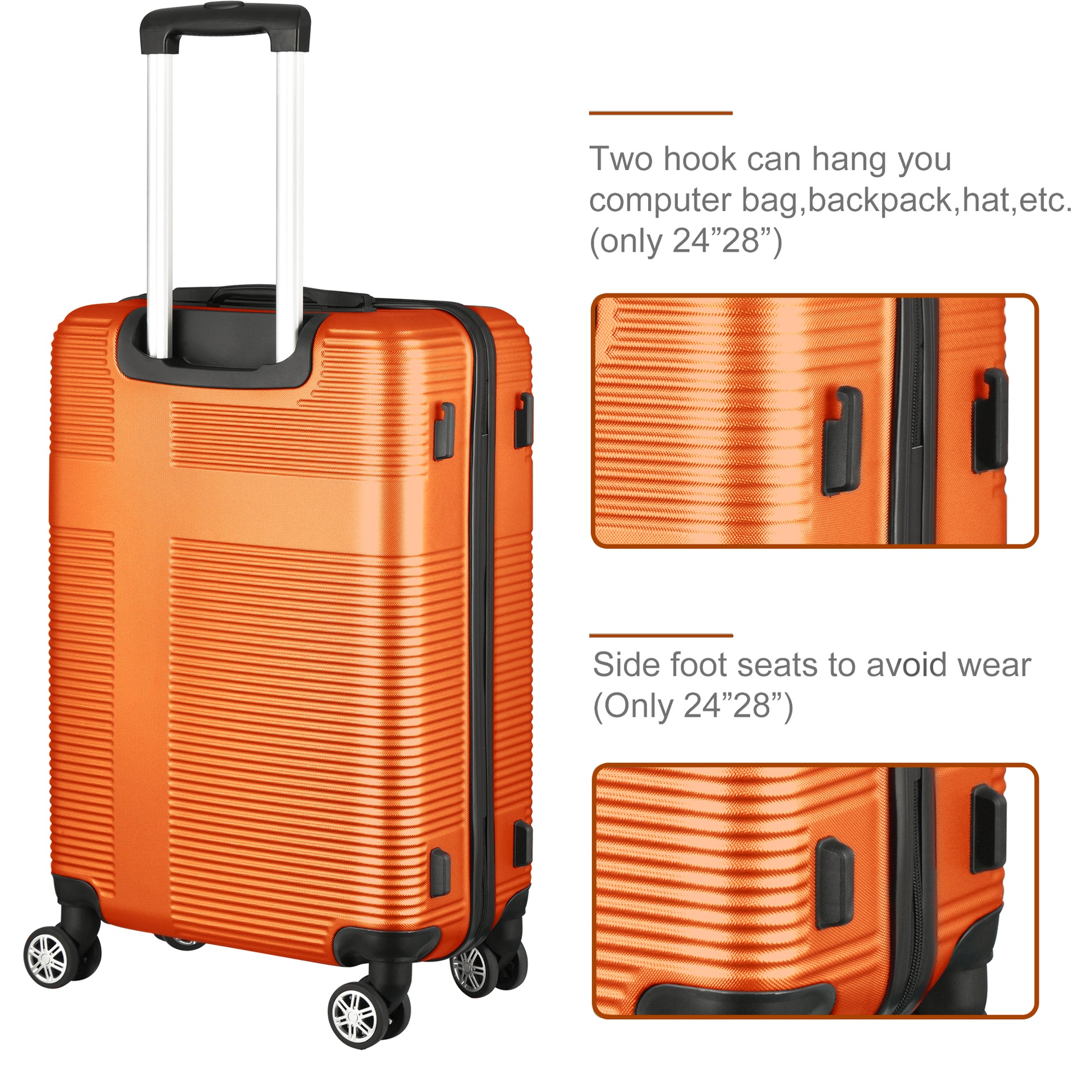 3 Piece Luggage With Tsa Lock Abs, Durable Luggage Set, Lightweight Suitcase With Hooks, Spinner Wheels Cross Stripe Luggage Sets 20In 24In 28In Orange Abs