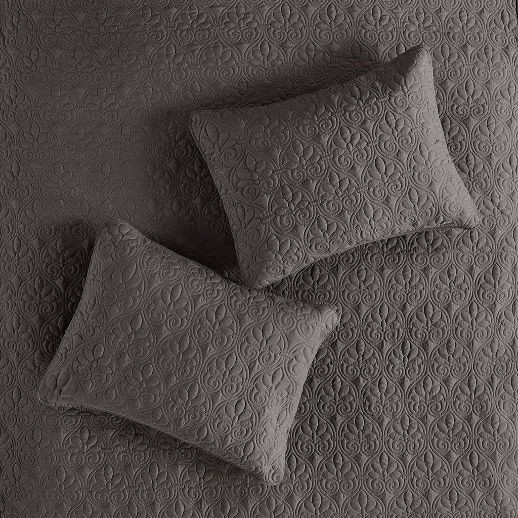 3 Piece Split Corner Pleated Quilted Bedspread Dark Grey King Dark Grey Polyester