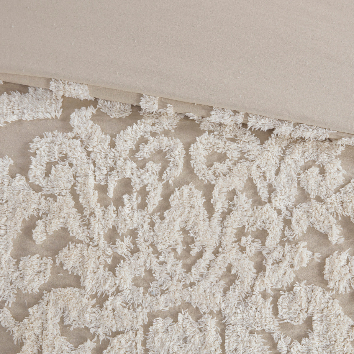 3 Piece Tufted Cotton Chenille Da Comforter Set Taupe Full Queen Full Taupe Polyester