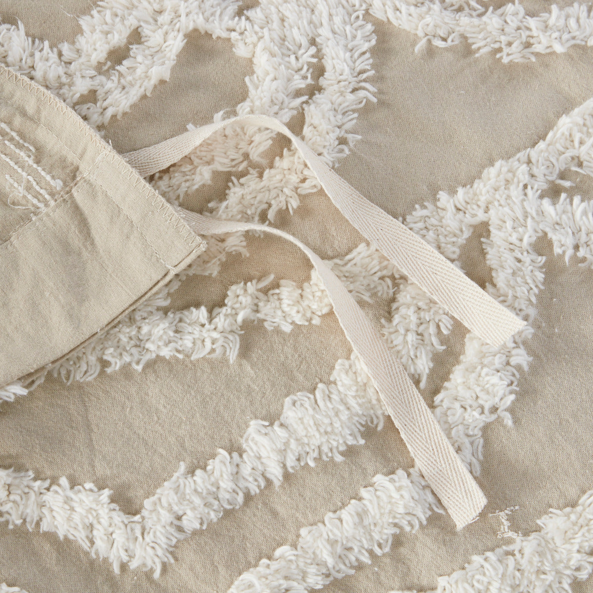 3 Piece Tufted Cotton Duvet Cover Set King Taupe Cotton