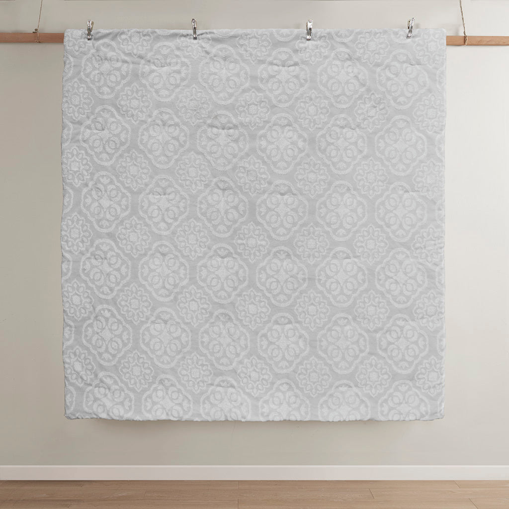 3 Piece Tufted Woven Medallion Comforter Set Grey White Polyester