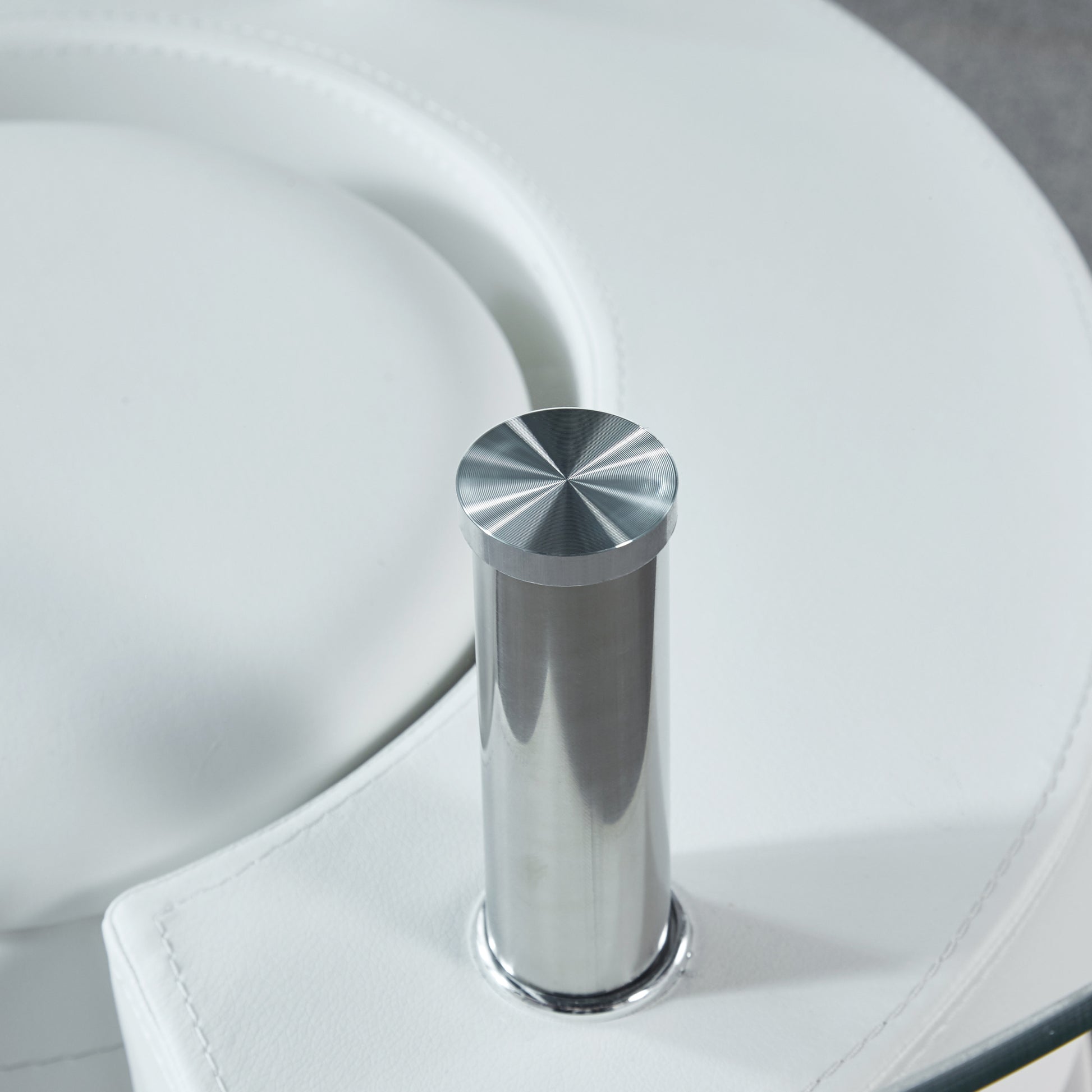 3 Pieces Coffee Table Set, Oval 10Mm 0.39" Thick Tempered Glass Table And 2 Leather Stools White Glass