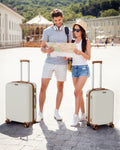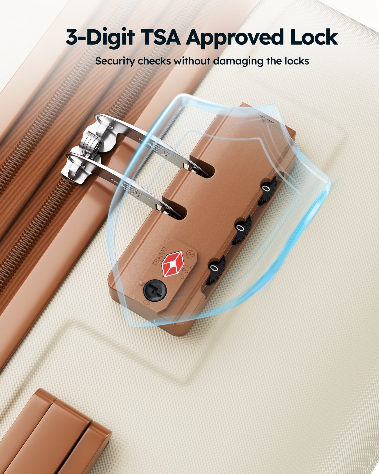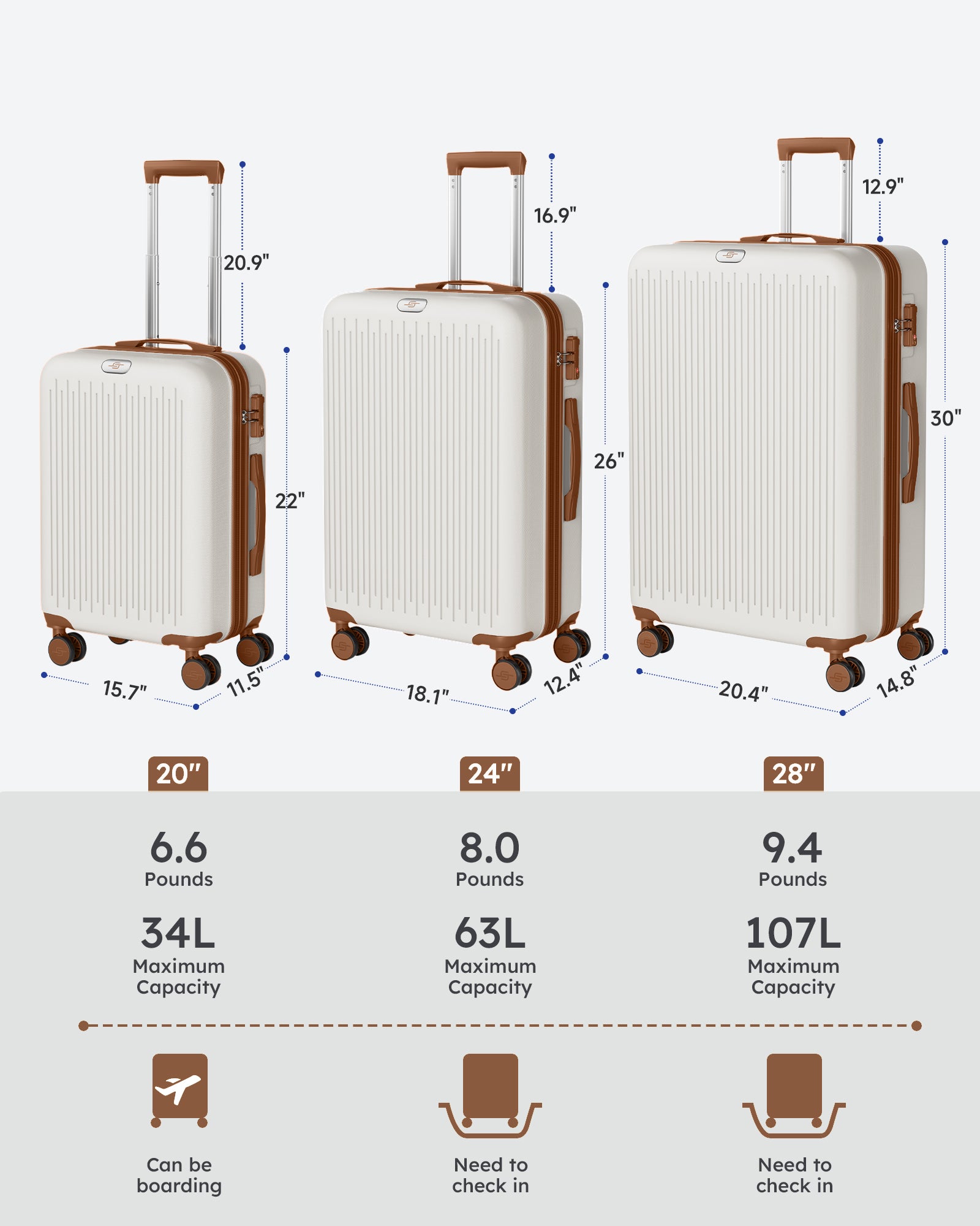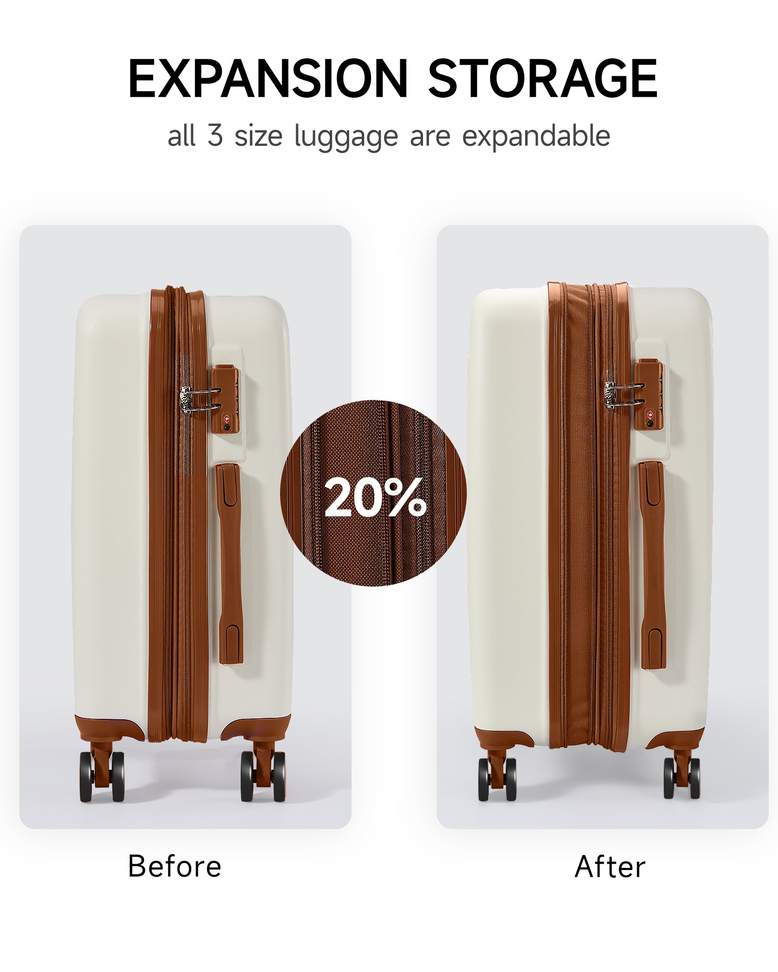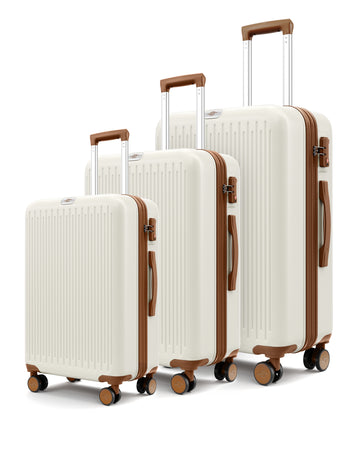 3 Pieces Set Luggage Hard Sided Expandable Luggage With Tsa Lock Travel Essentials Suitcase With Spinner Wheels Brown White Abs