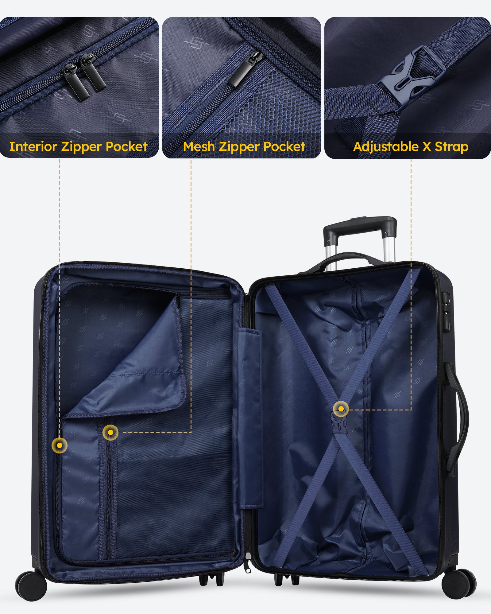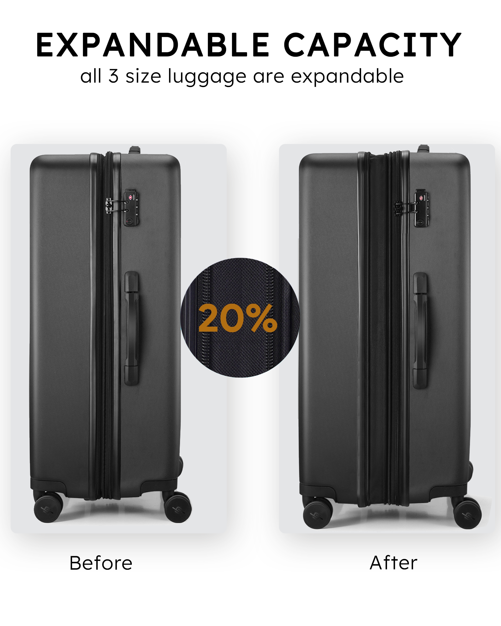3 Pieces Set Luggage Hard Sided Expandable Luggage With Tsa Lock Travel Essentials Suitcase With Spinner Wheels Black Abs