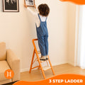 3 Step Ladder Folding Step Stool For Adults With Wide Anti Slip Pedal, Aluminium Lightweight Foldable Step Ladders For Home Kitchen Office, 580 Lbs Capacity Orange Aluminum