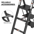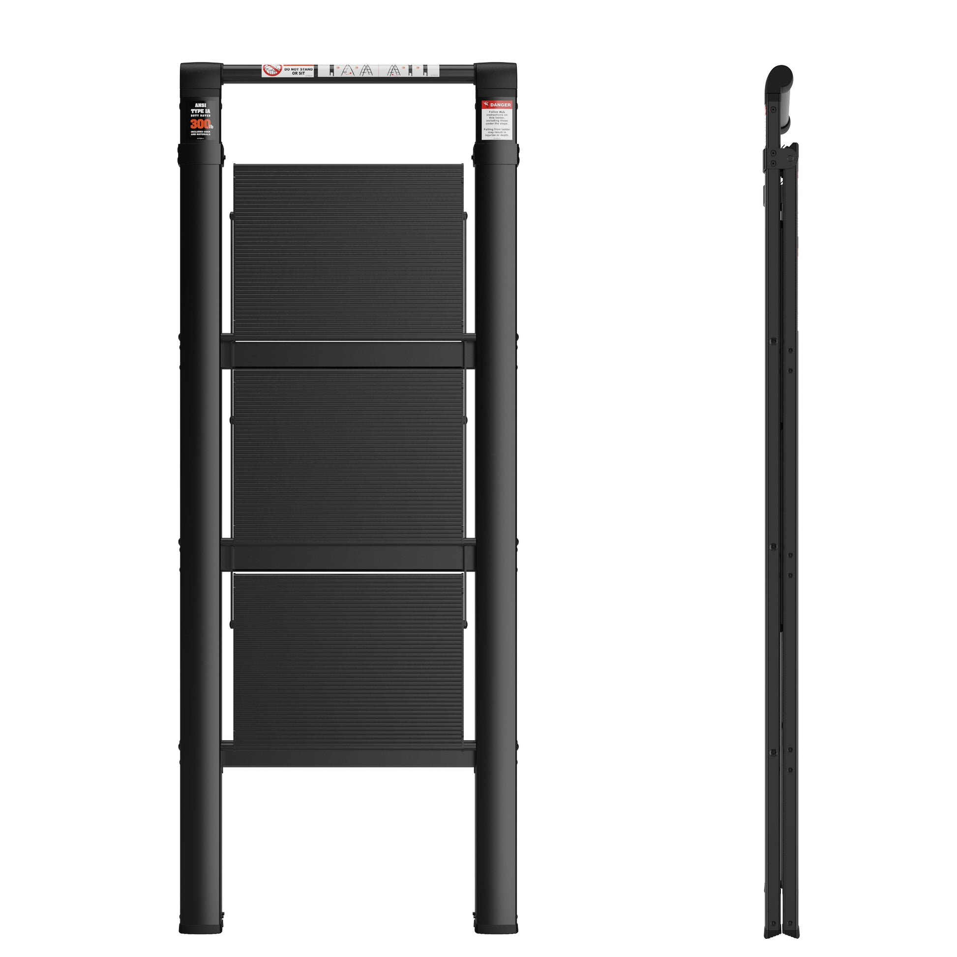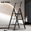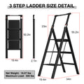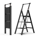 3 Step Ladder, Retractable Handgrip Folding Step Stool With Anti Slip Wide Pedal, Aluminum Stool Ladders 3 Steps, 300Lbs Safety Household Ladder Black Pc Aluminium