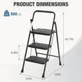 3 Step Ladder, Step Stool Foldable, 800Lbs Portable Ladder With Wide Anti Slip Pedal, Step Stool For Adults, Lightweight Step Ladder For Home Kitchen And Outdoor Black Metal & Wood