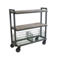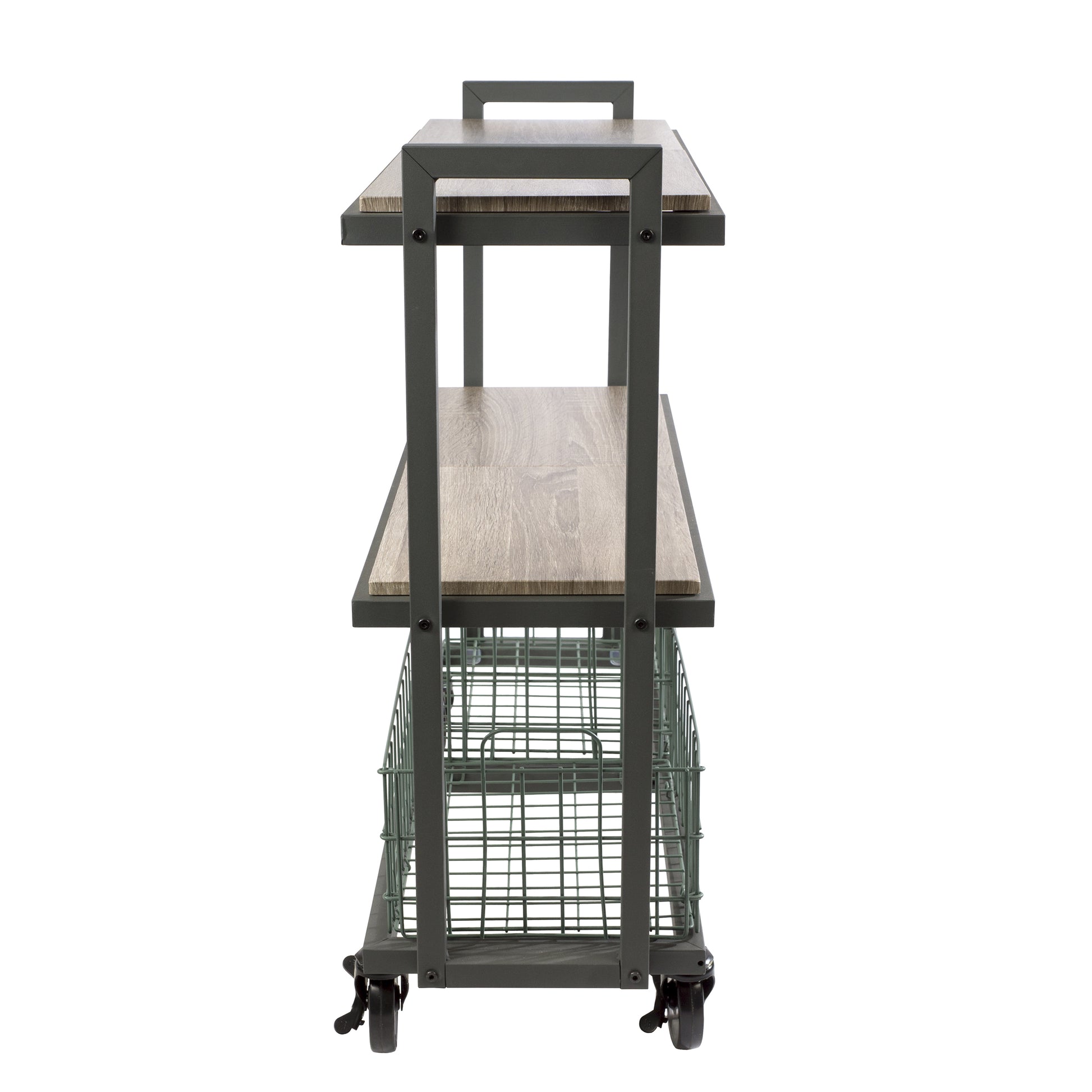 3 Tier Cart, Interchangeable Baskets And Shelves, Caster Wheels, Powder Coated Metal In Green Green Metal