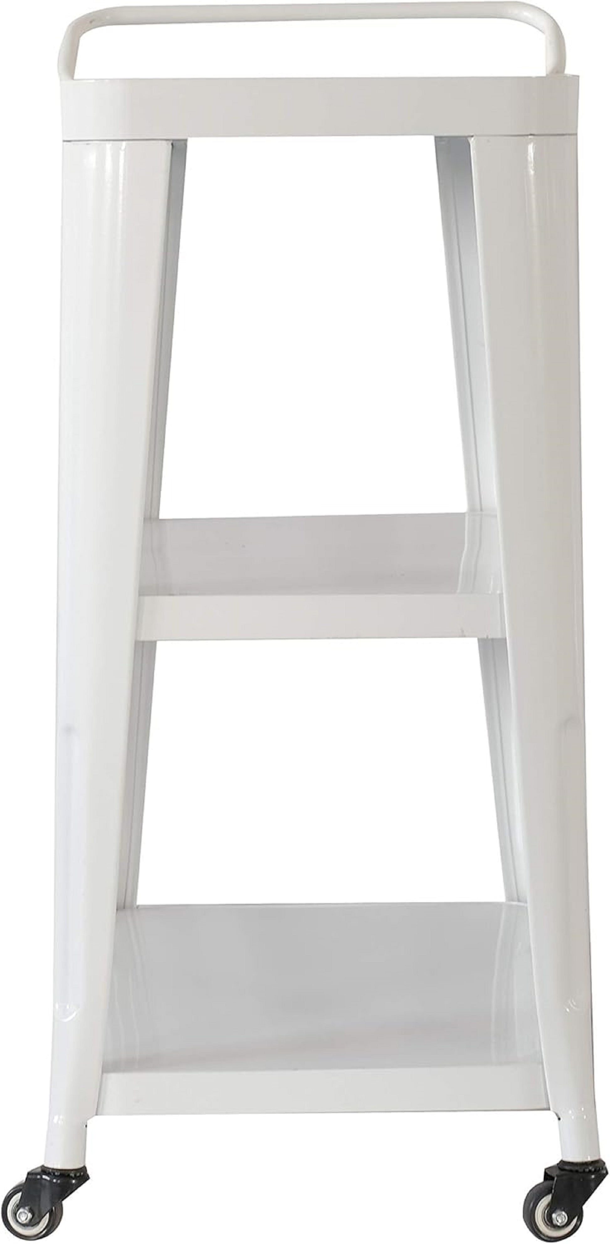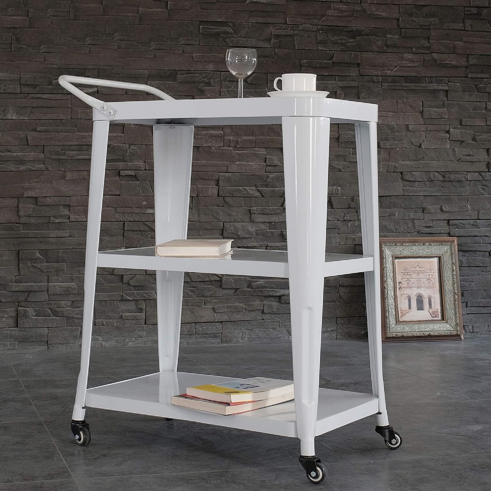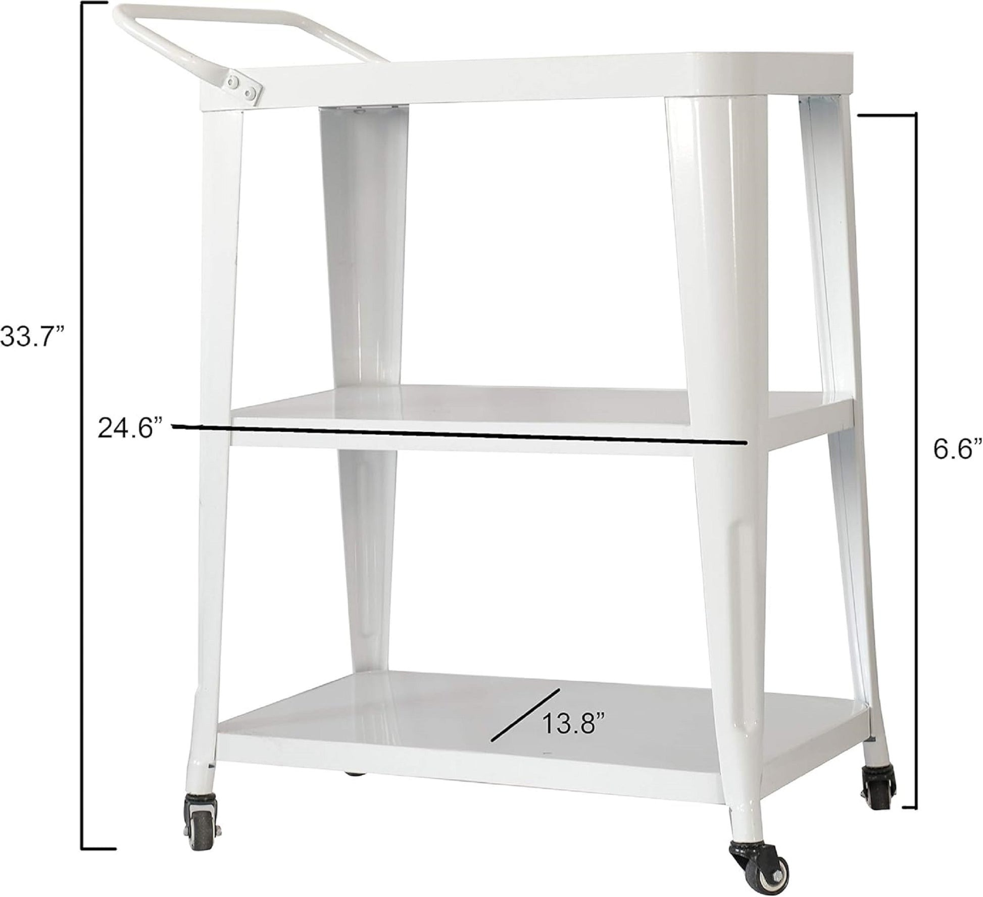 3 Tier Metal Rolling Cart Swivel Rollers Durable Utility Table Wheels With Handle All Metal Frame Easy Mobility Versatile Kitchen Stand Bar Serving Use White 1Pc White Office Modern Metal
