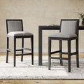 30.5 Inch Height Bar Stools Set Of 2, Rubber Wood Frame,Fabric Sponge Cushion And Upholstered Barstools, Retro Bar Chairs Suitable For Kitchen Island,Bedroom,Dining Room. Black Grey Kitchen Sponge