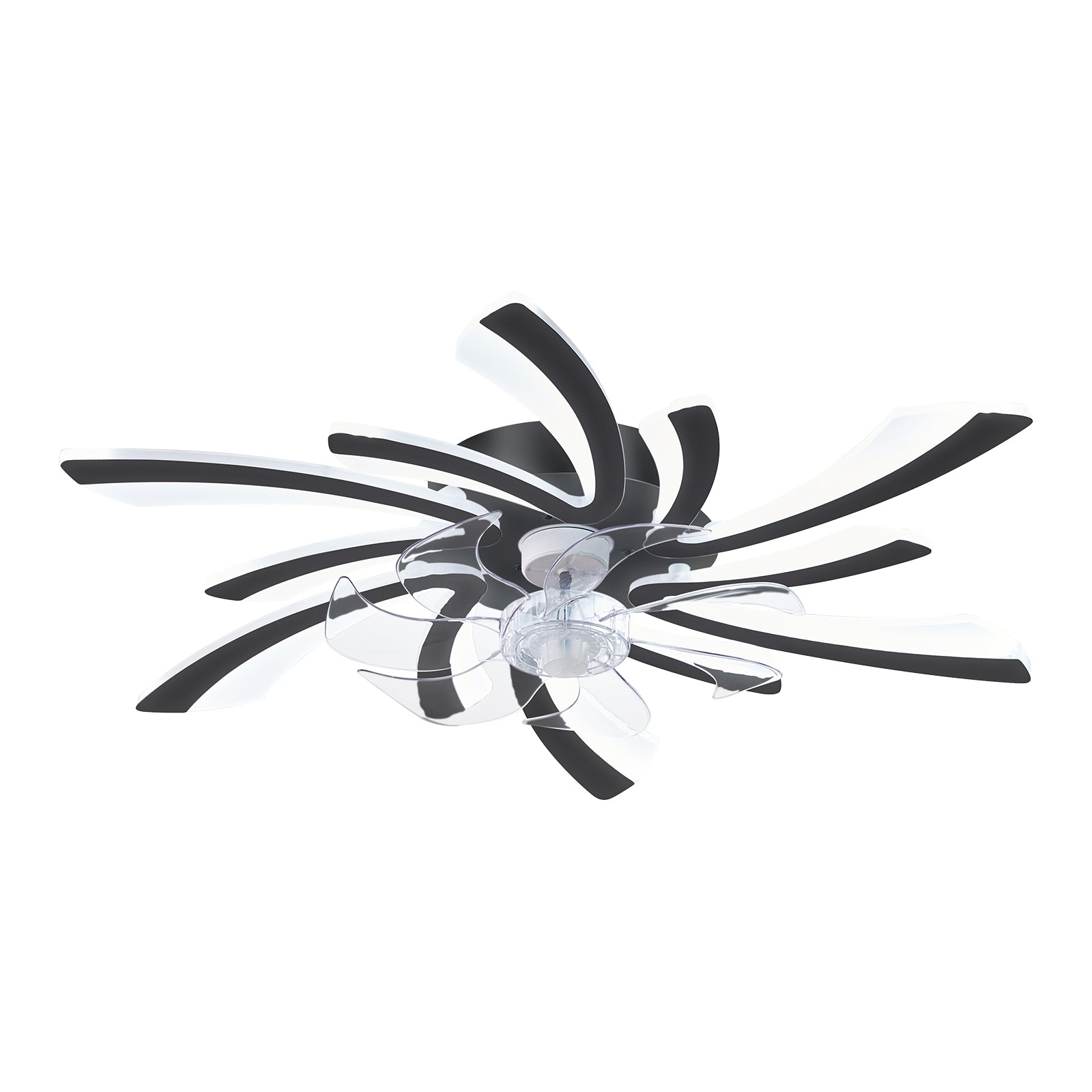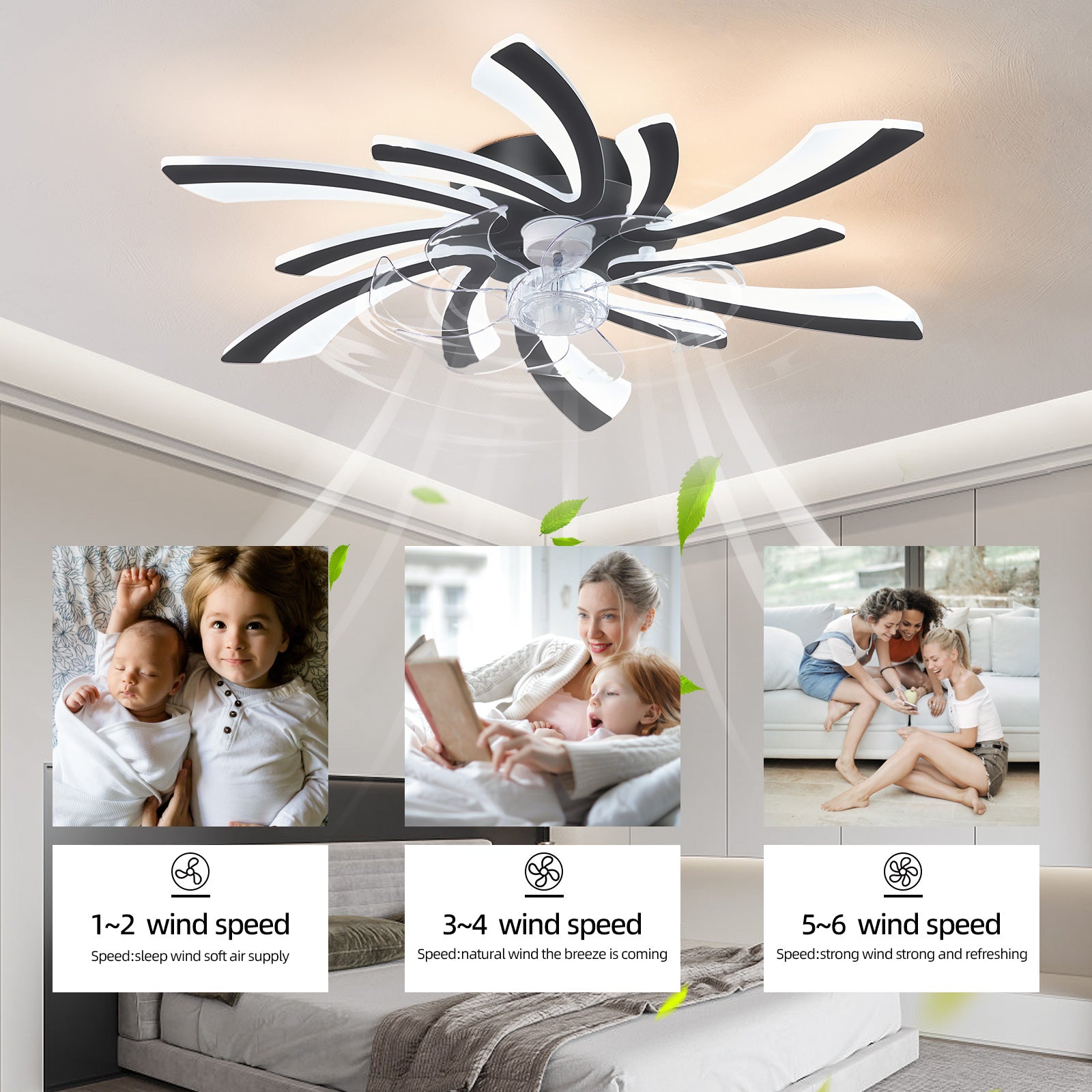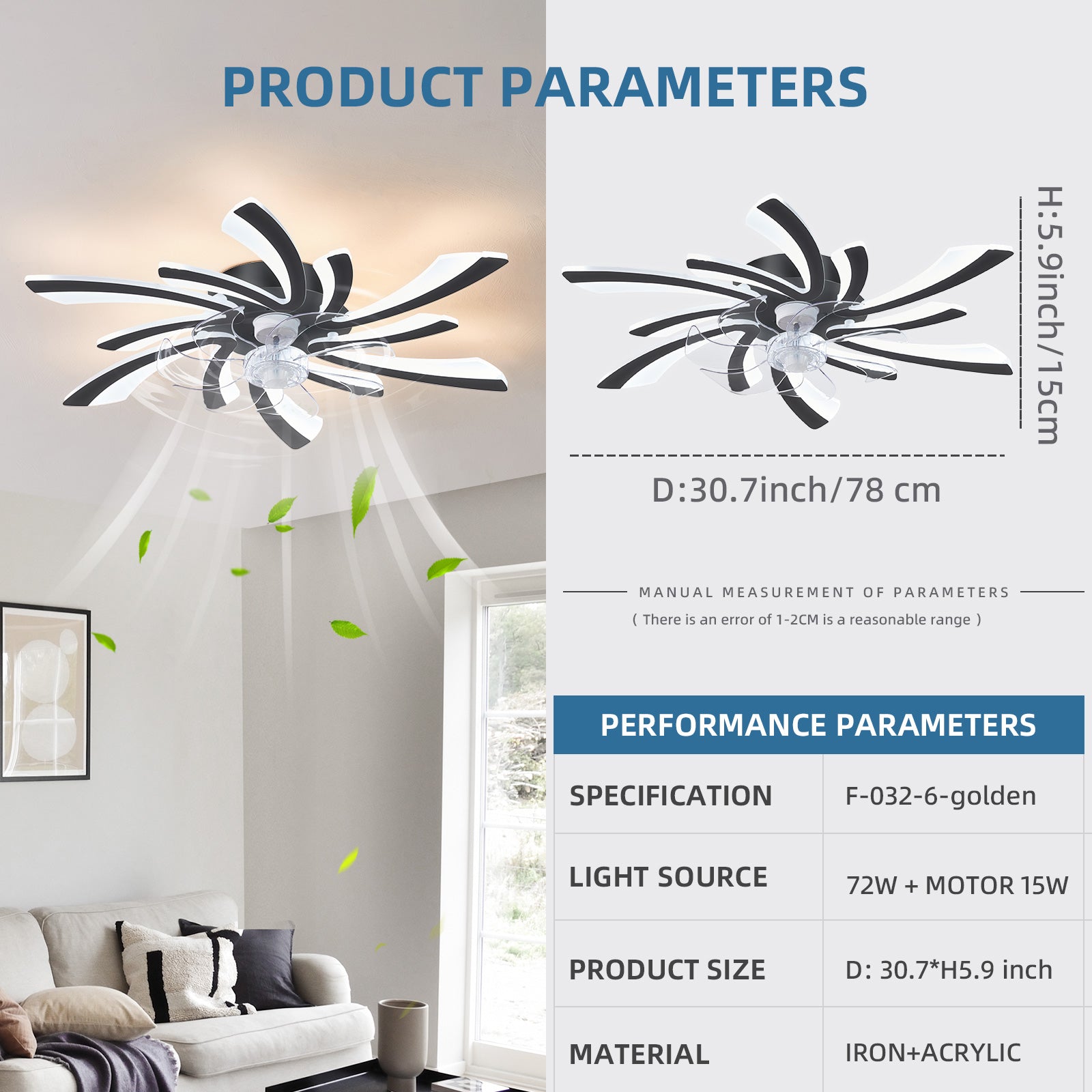 30.7In Ceiling Fan With Lights, Remote Control 3 Color Temperatures,6 Gear Wind Speed Fan Light Black Modern Acrylic