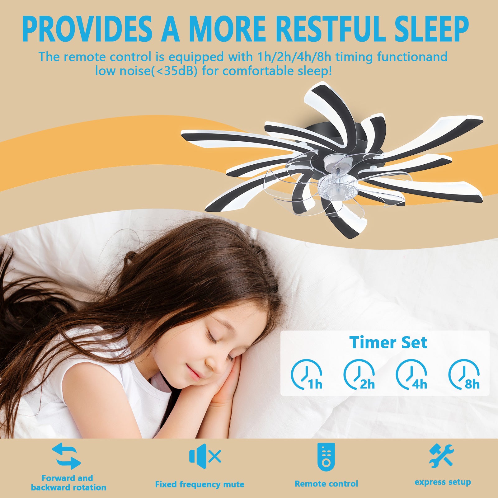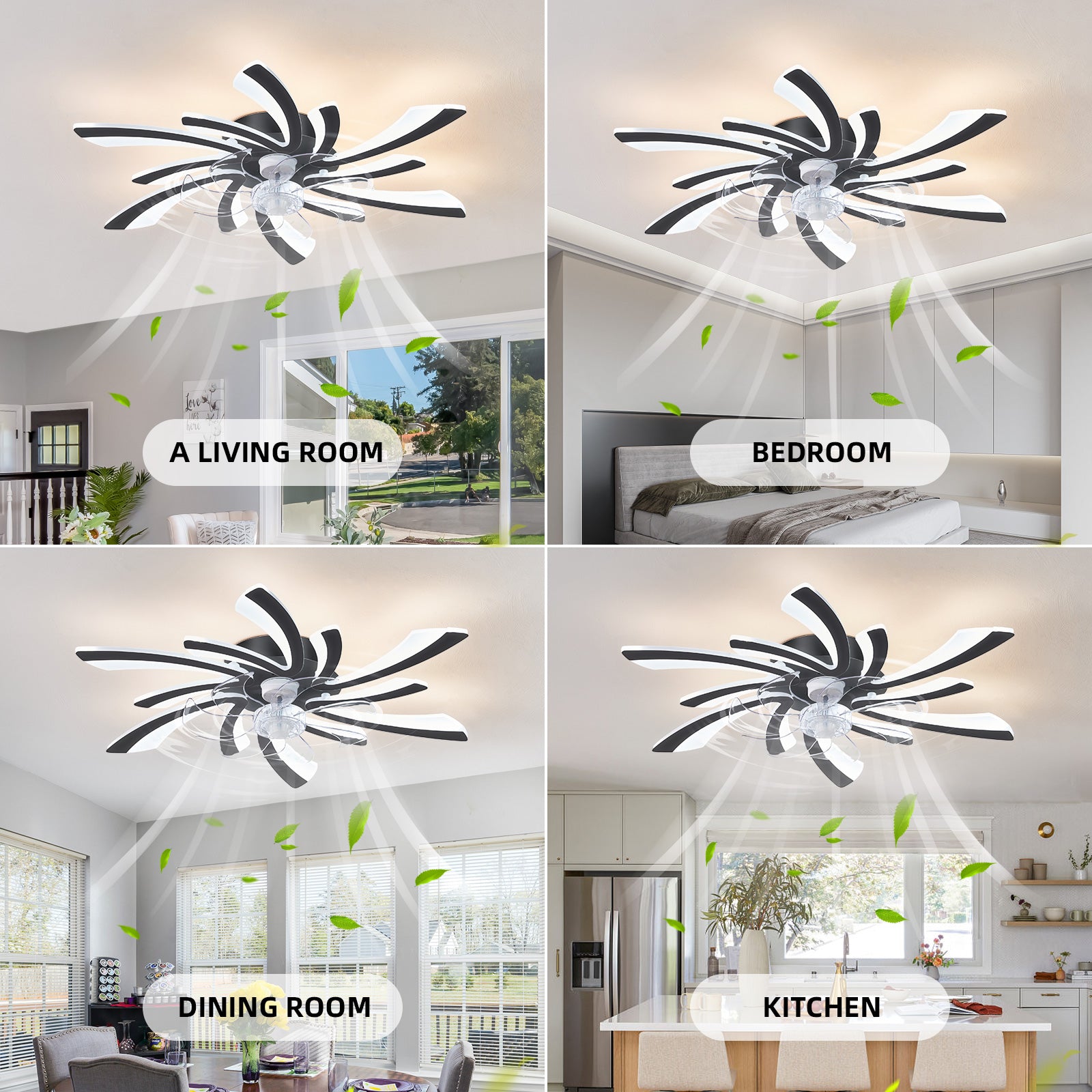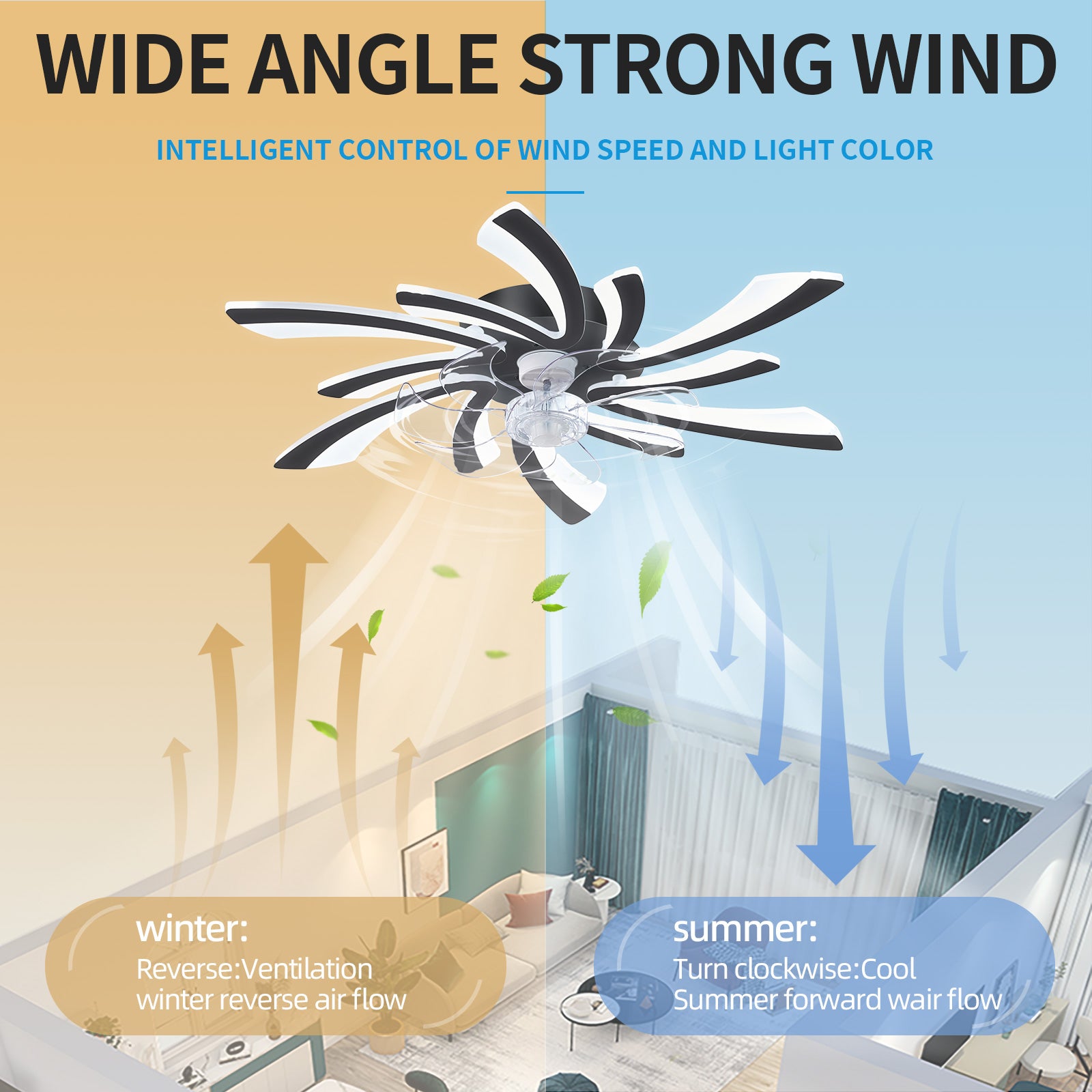 30.7In Ceiling Fan With Lights, Remote Control 3 Color Temperatures,6 Gear Wind Speed Fan Light Black Modern Acrylic
