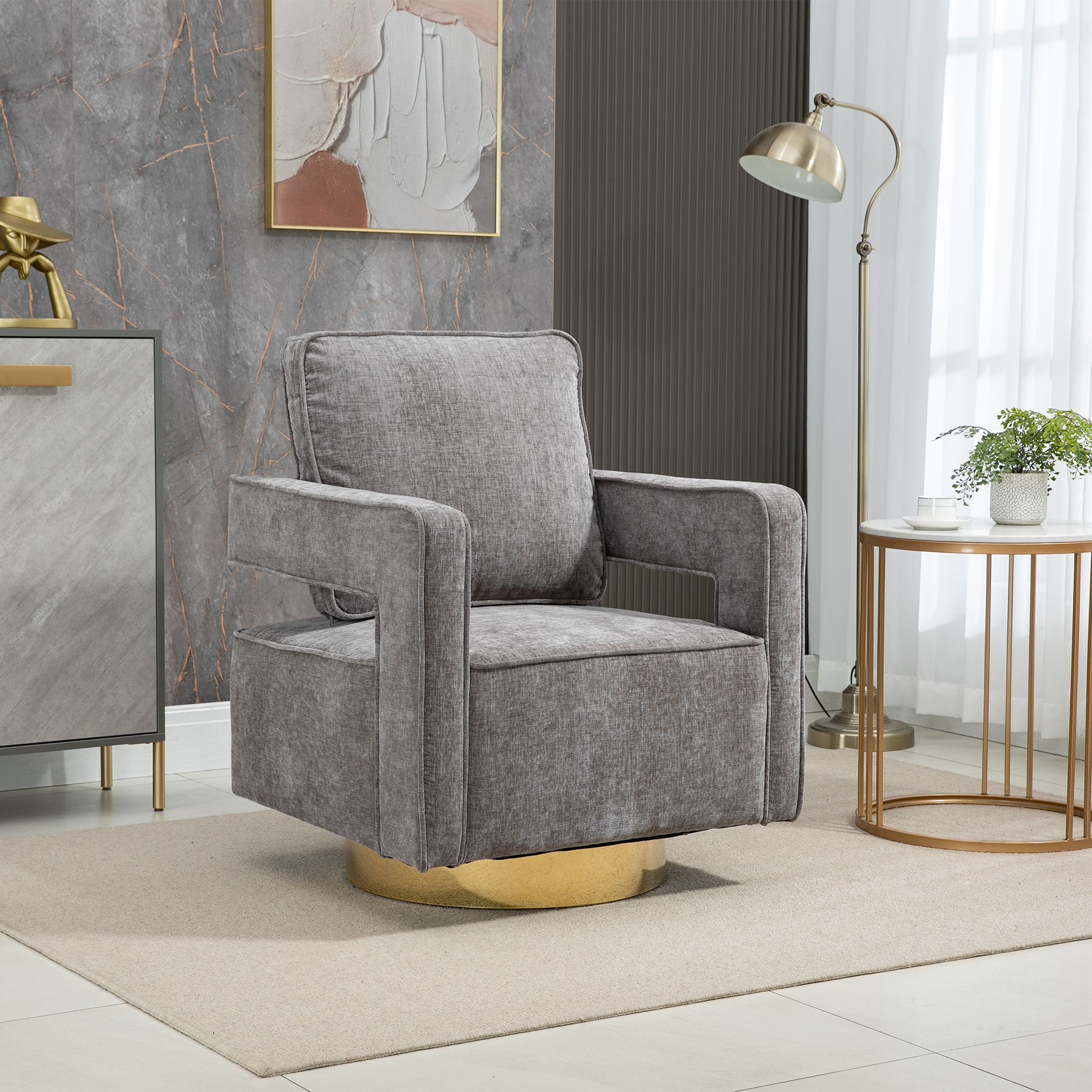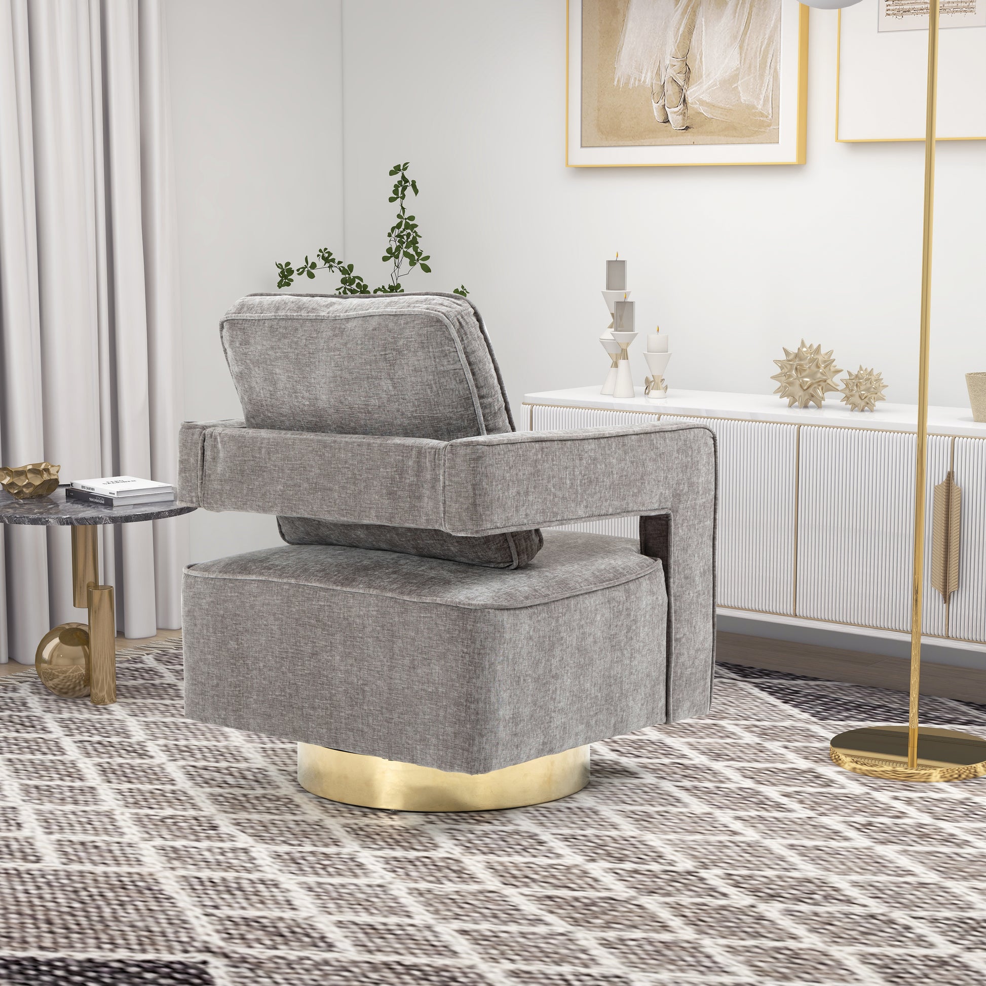 30.7"W Swivel Accent Open Back Chair Modern Comfy Sofa Chair With Gold Stainless Steel Base For Nursery Bedroom Living Room Hotel Office, Club Chair Leisure Arm Chair For Lounge Gray Chenille Gray