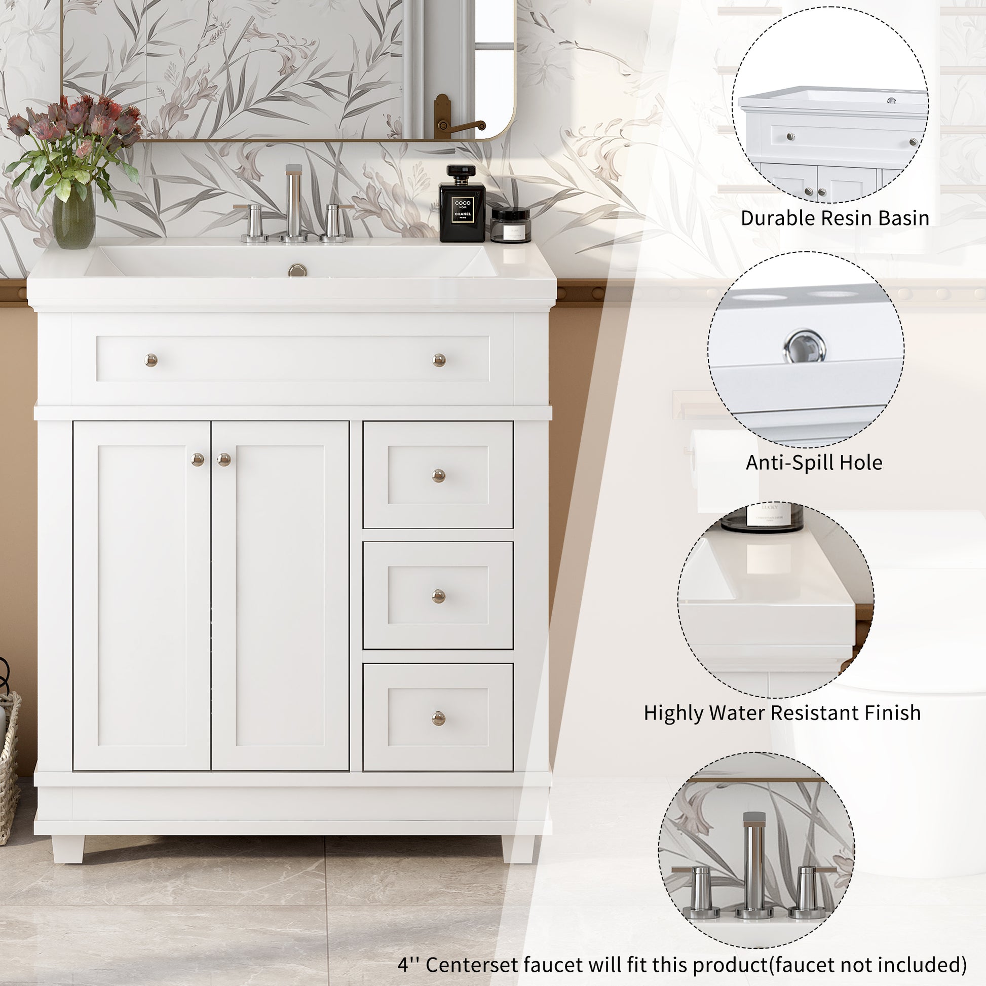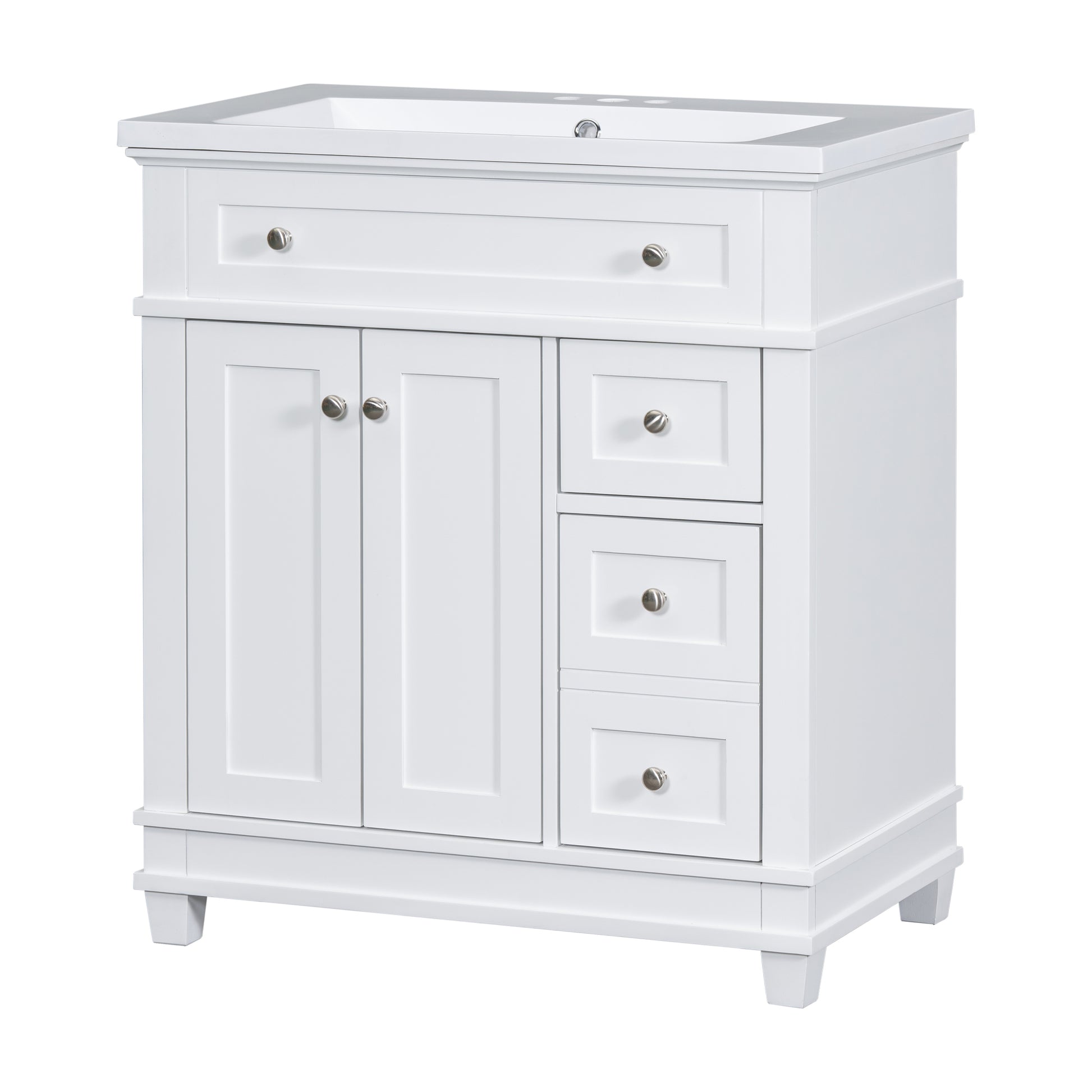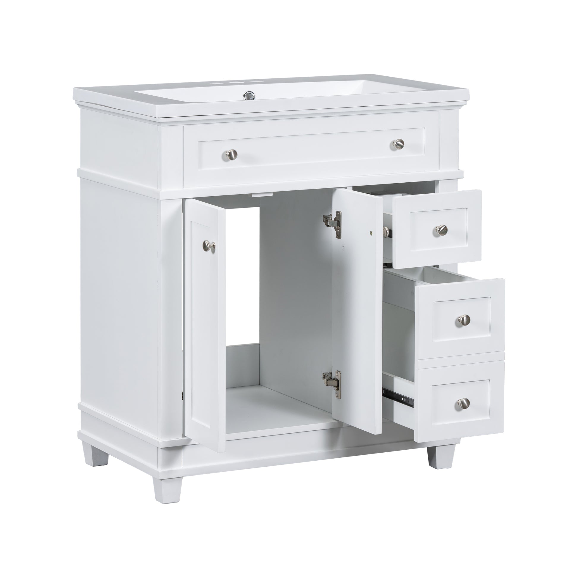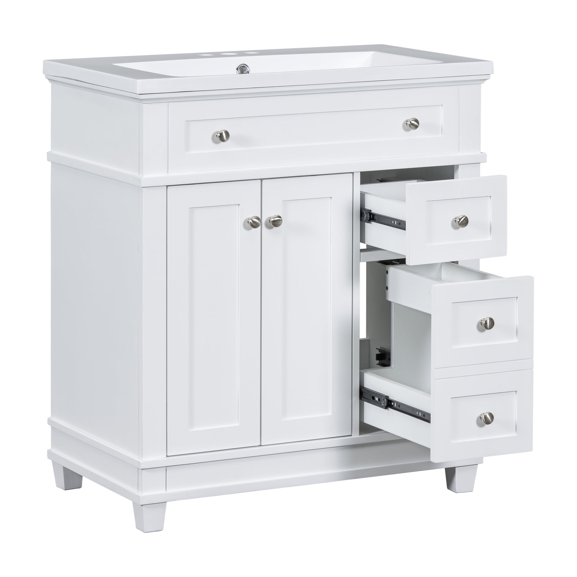 30" Bathroom Vanity Cabinet With Sink Combo Set, Undermount Resin Sink, Free Standing Vanity Set With 2 Drawers& Soft Closing Doors, Solid Wood Frame Bathroom Cabinet, White 2 White 2 1 Bathroom Freestanding Solid Wood Mdf Resin Painted