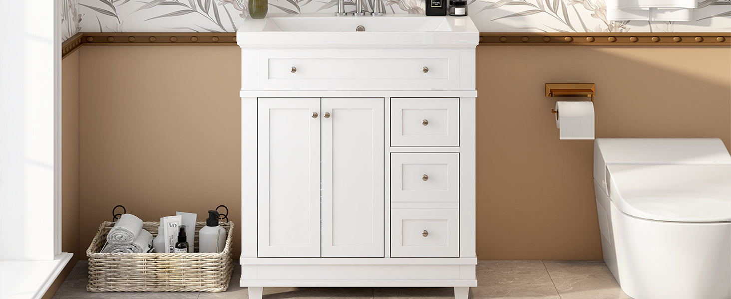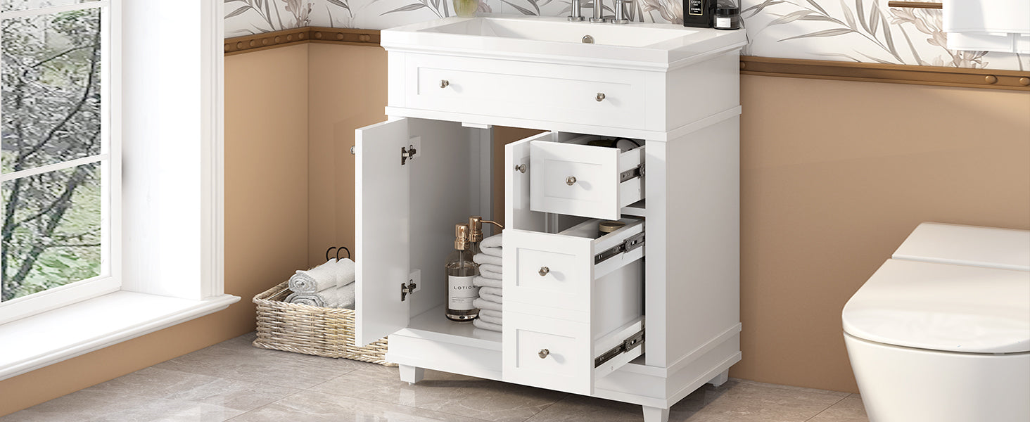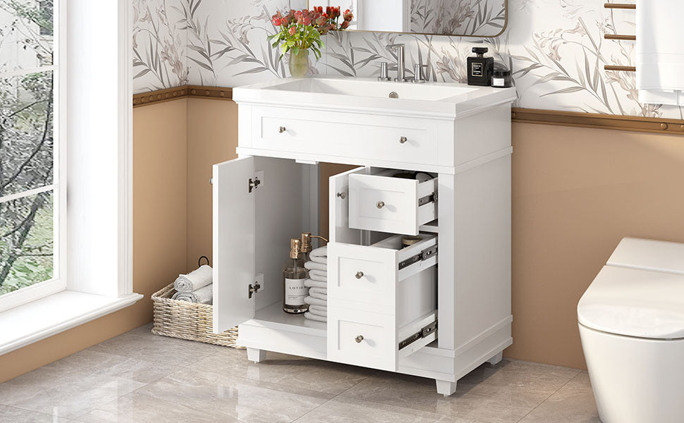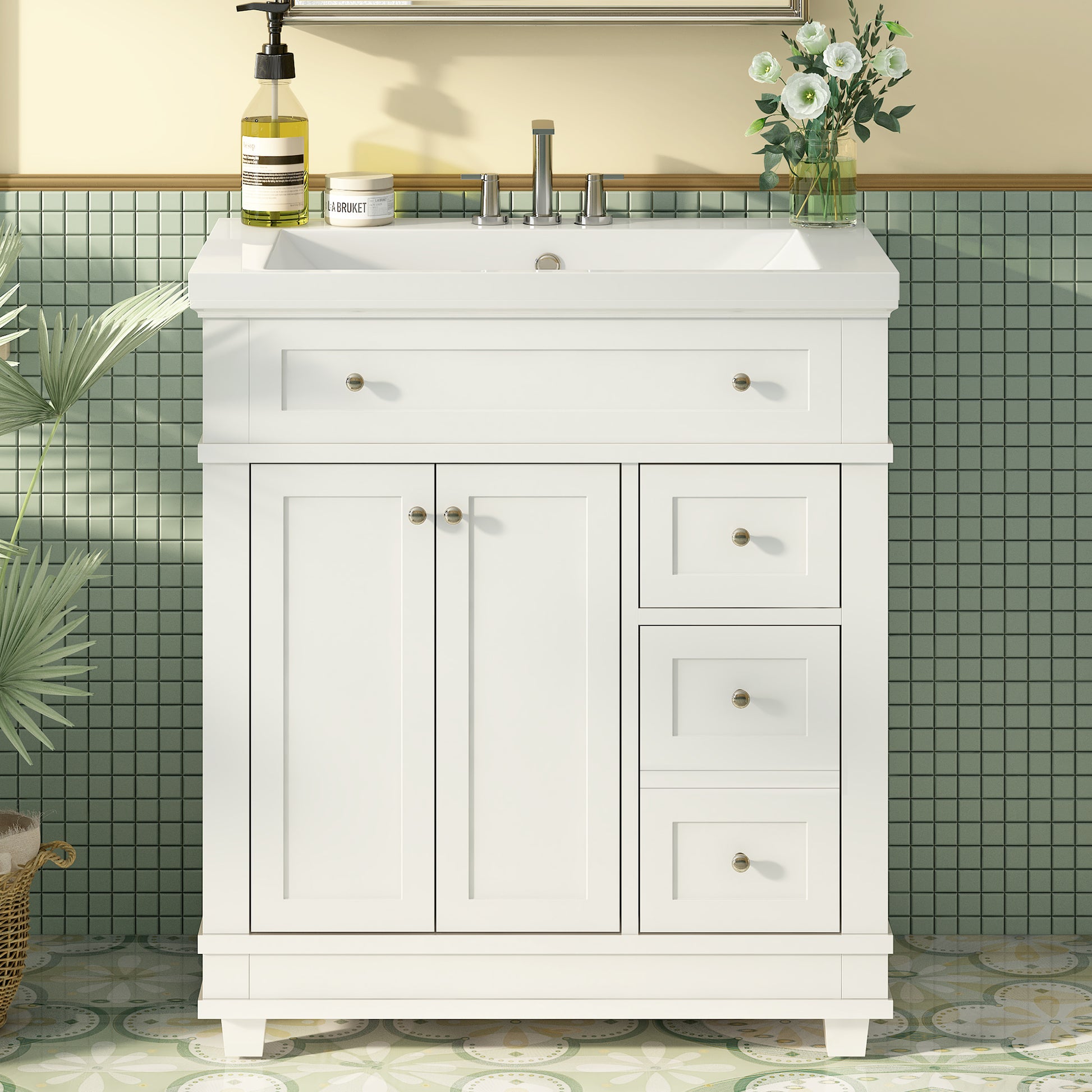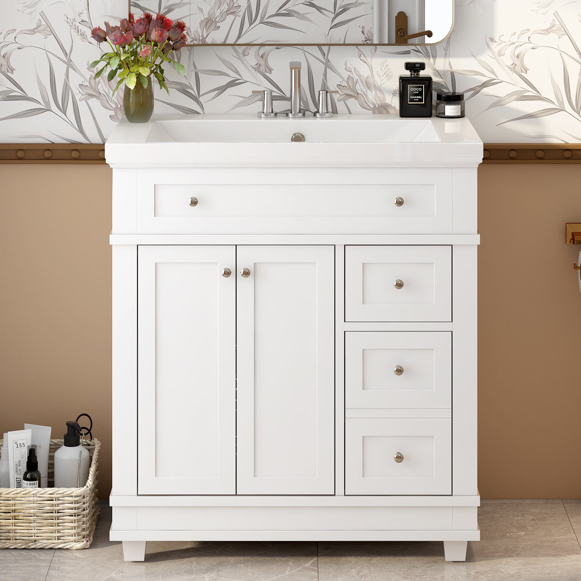 30" Bathroom Vanity Cabinet With Sink Combo Set, Undermount Resin Sink, Free Standing Vanity Set With 2 Drawers& Soft Closing Doors, Solid Wood Frame Bathroom Cabinet, White 2 White 2 1 Bathroom Freestanding Solid Wood Mdf Resin Painted