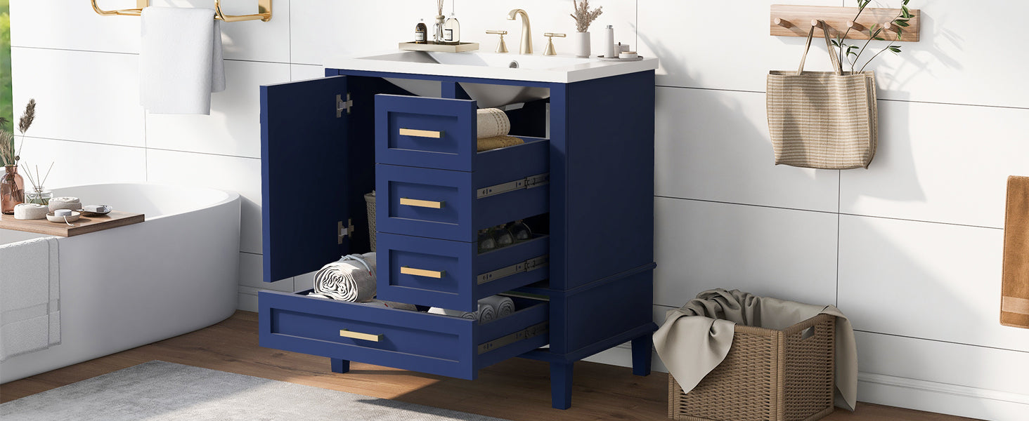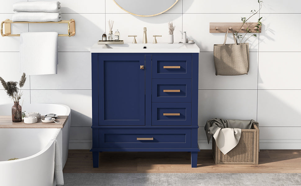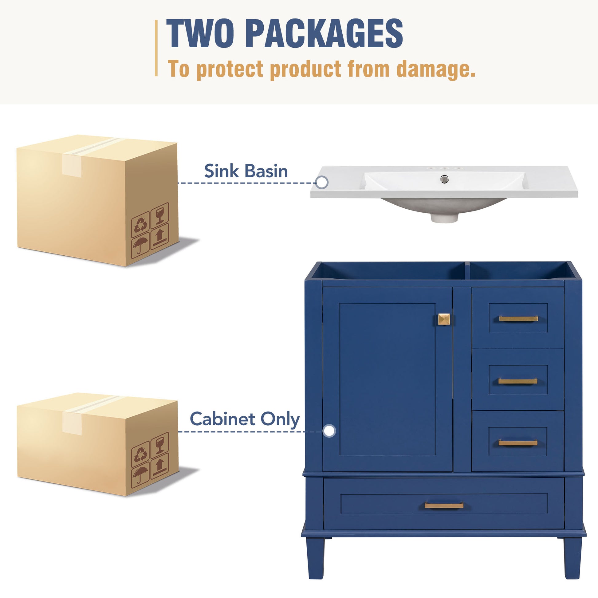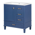 30" Bathroom Vanity, Modern Bathroom Cabinet With Sink Combo Set, Bathroom Storage Cabinet With A Soft Closing Door And 3 Drawers,Solid Wood Frame Resin Basin Blue Solid Wood Mdf