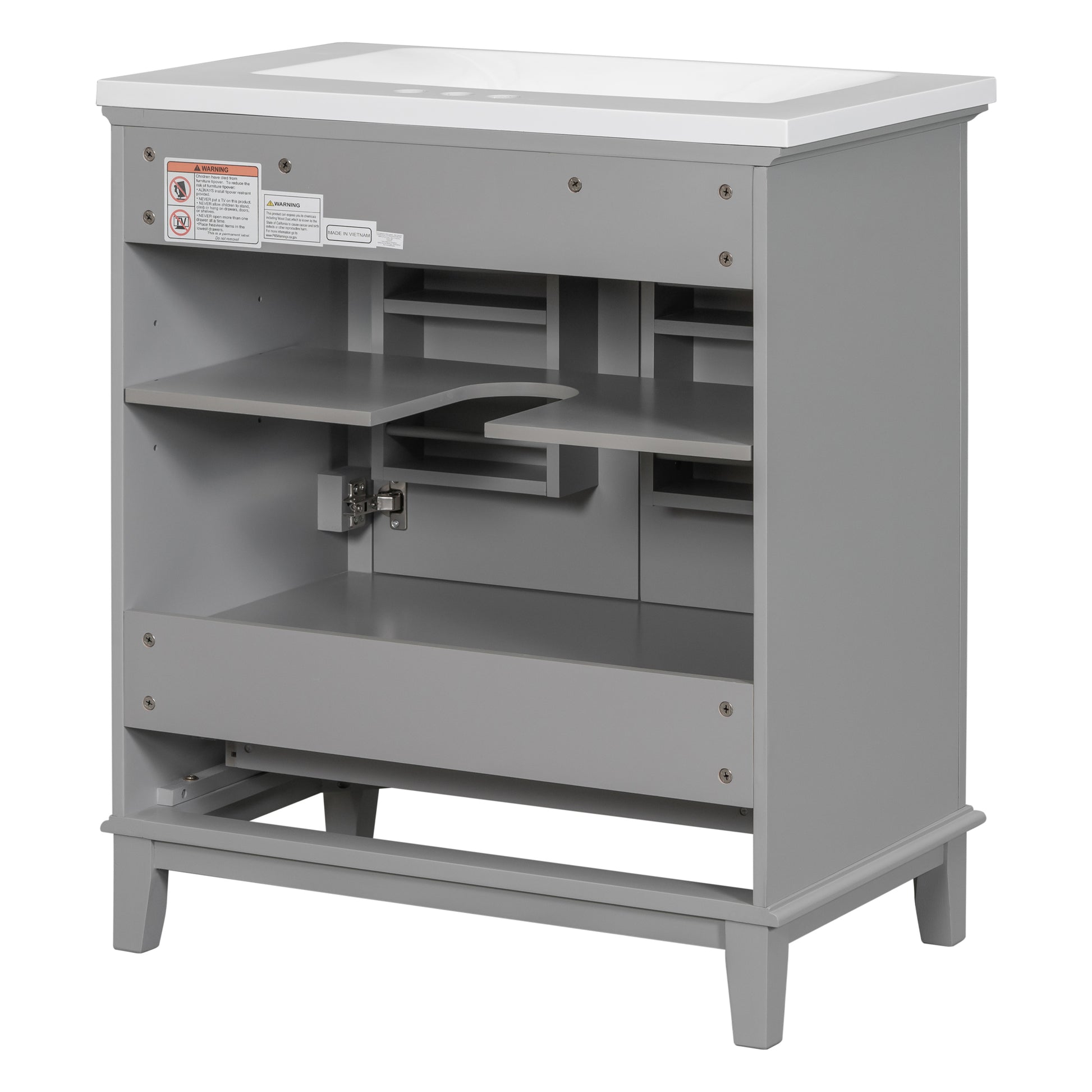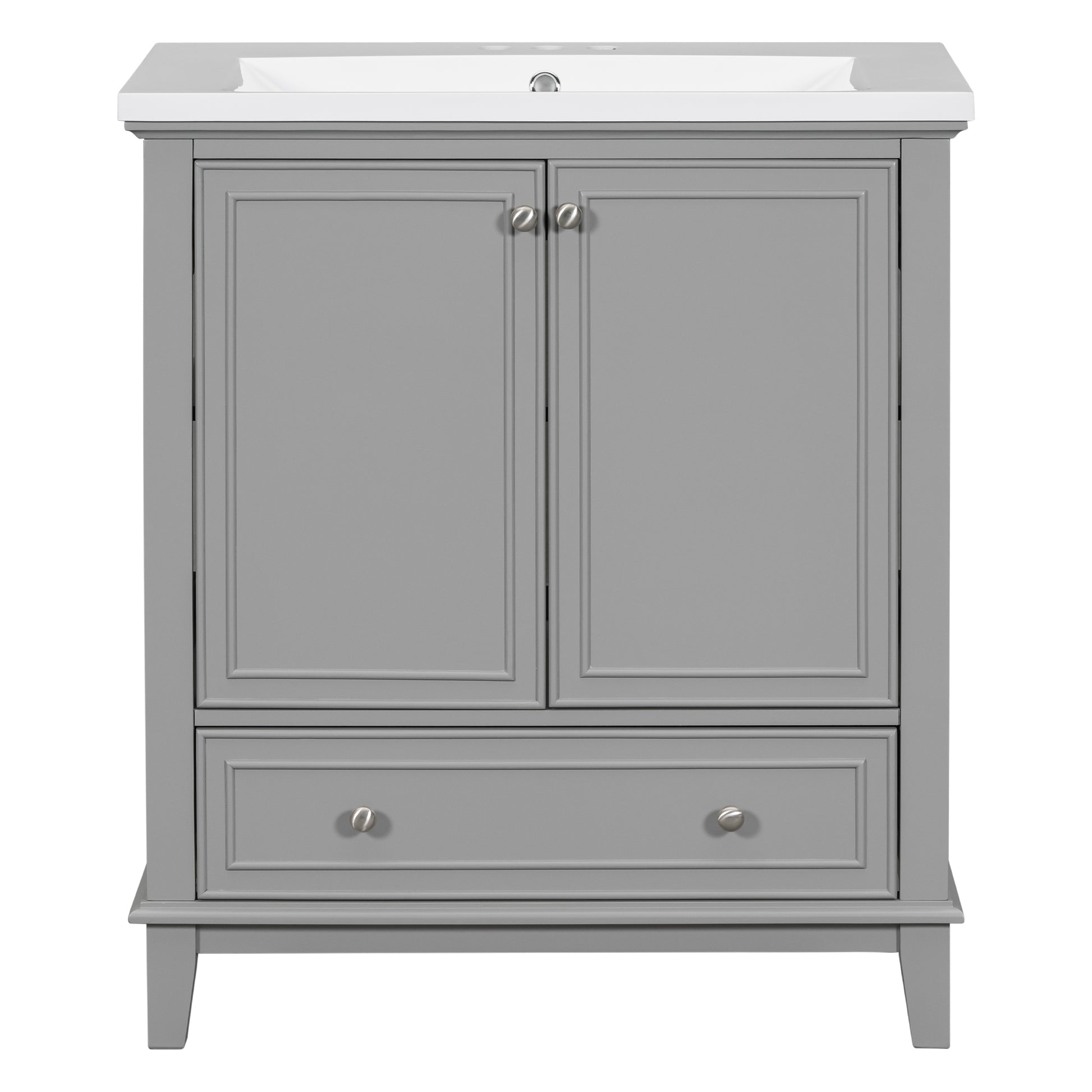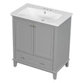30" Bathroom Vanity With Sink Combo, Multi Functional Bathroom Cabinet With Doors And Drawer, Solid Frame And Mdf Board, Grey Grey Solid Wood Mdf