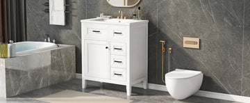 30" Bathroom Vanity With Sink Combo, White Bathroom Cabinet With Drawers, Solid Frame And Mdf Board White Solid Wood Mdf