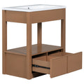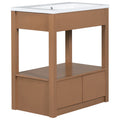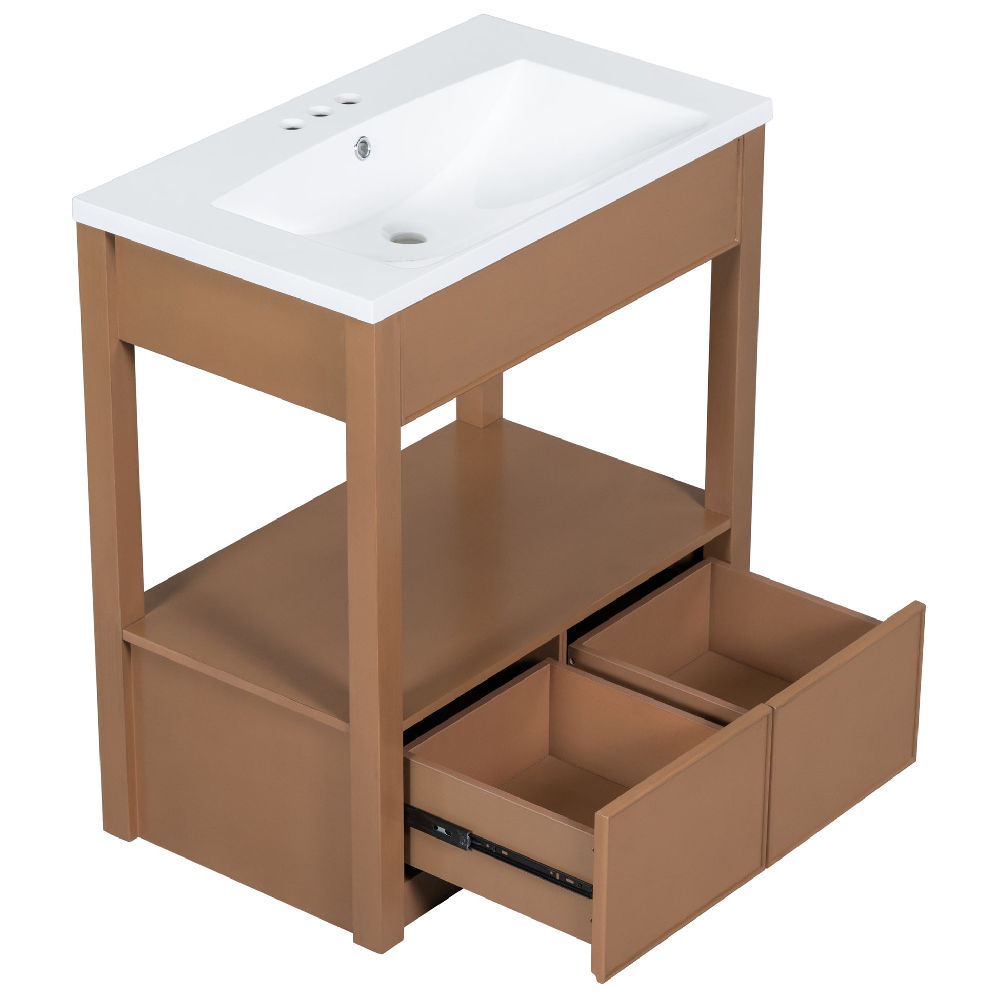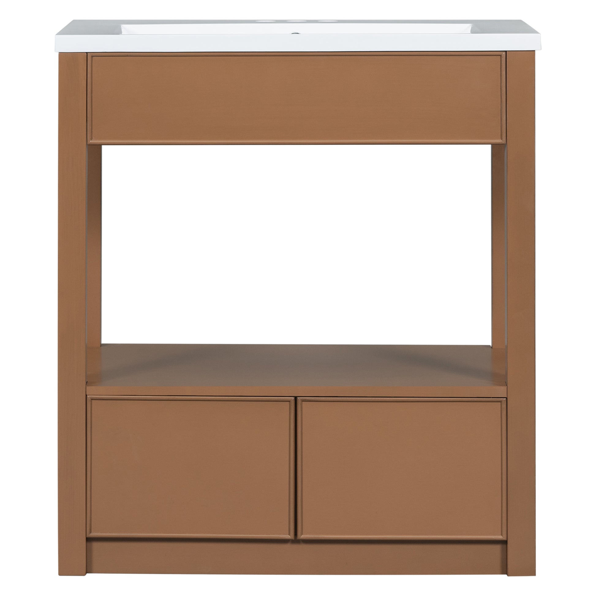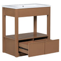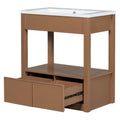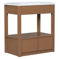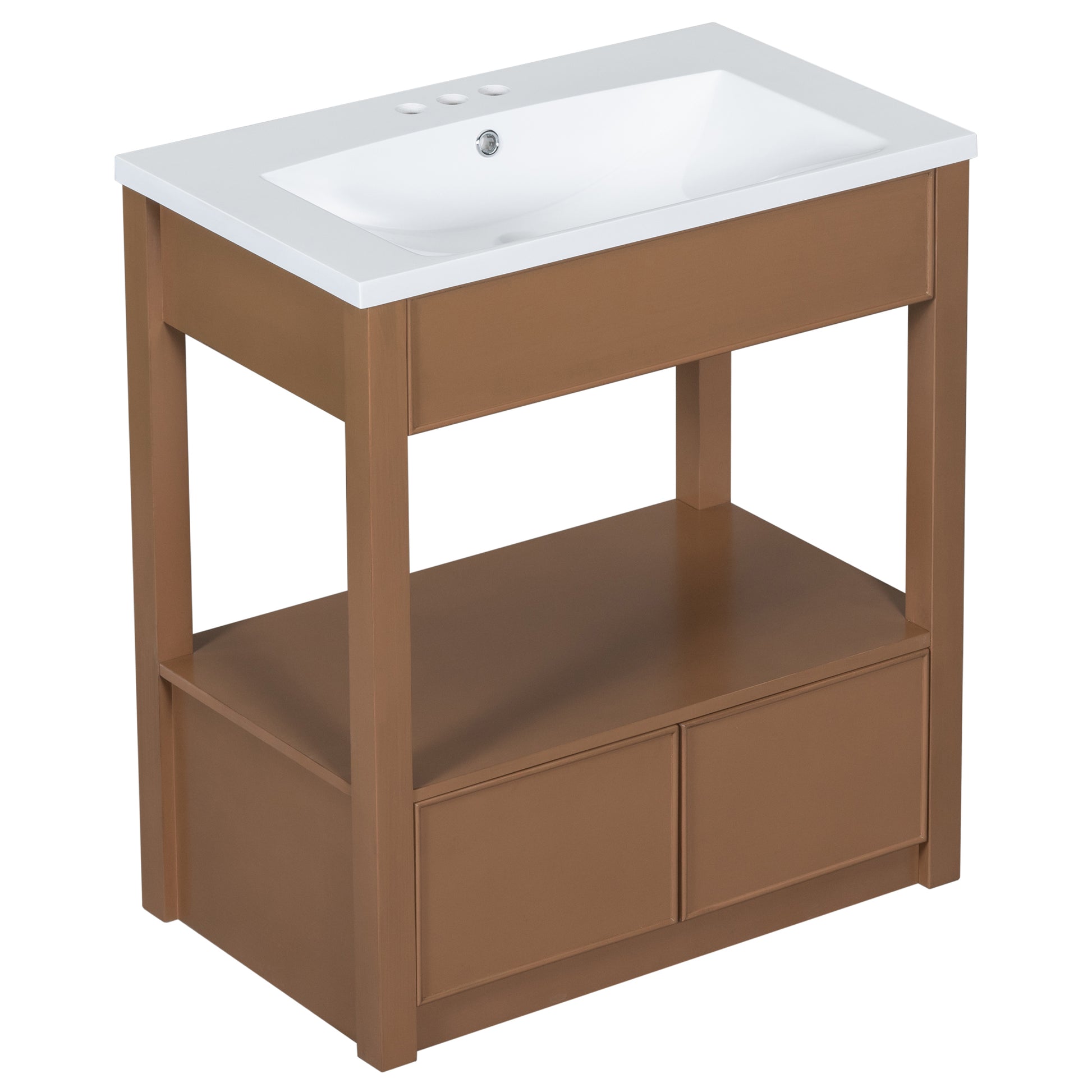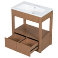 30" Bathroom Vanity With Sink Top, Bathroom Cabinet With Open Storage Shelf And Two Drawers, Brown Brown Solid Wood Mdf