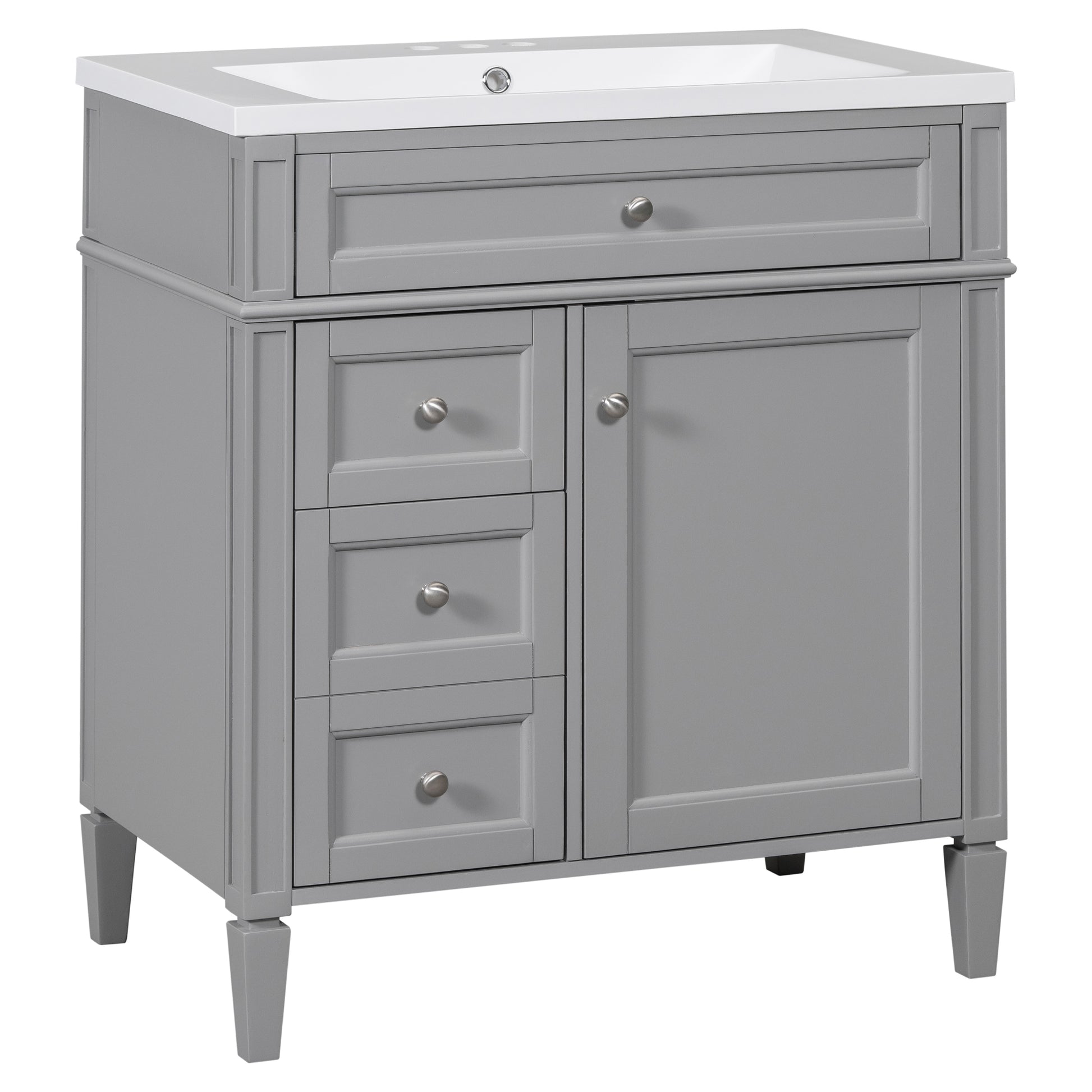 30'' Bathroom Vanity With Top Sink, Modern Bathroom Storage Cabinet With 2 Drawers And A Tip Out Drawer, Single Sink Bathroom Vanity Grey Mdf