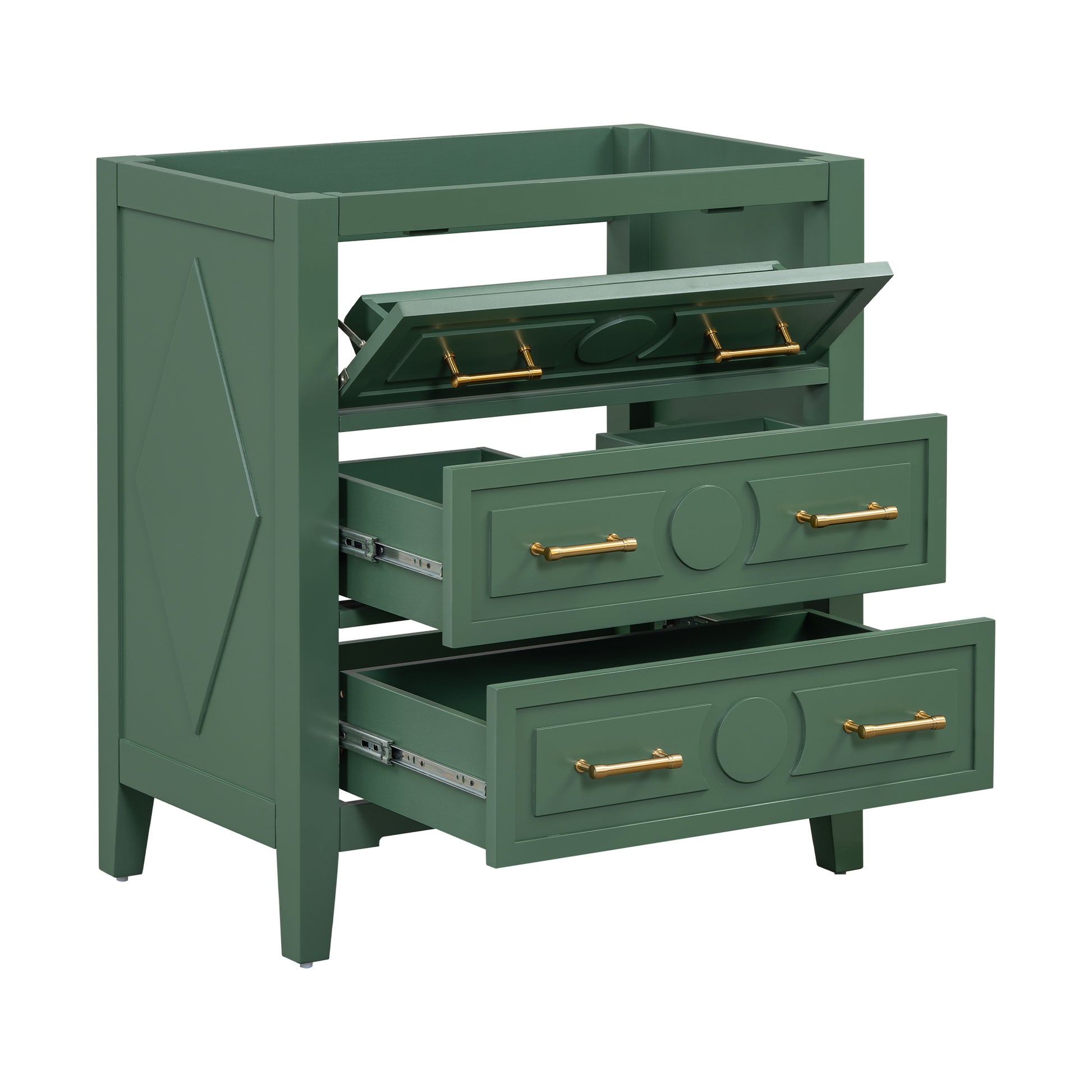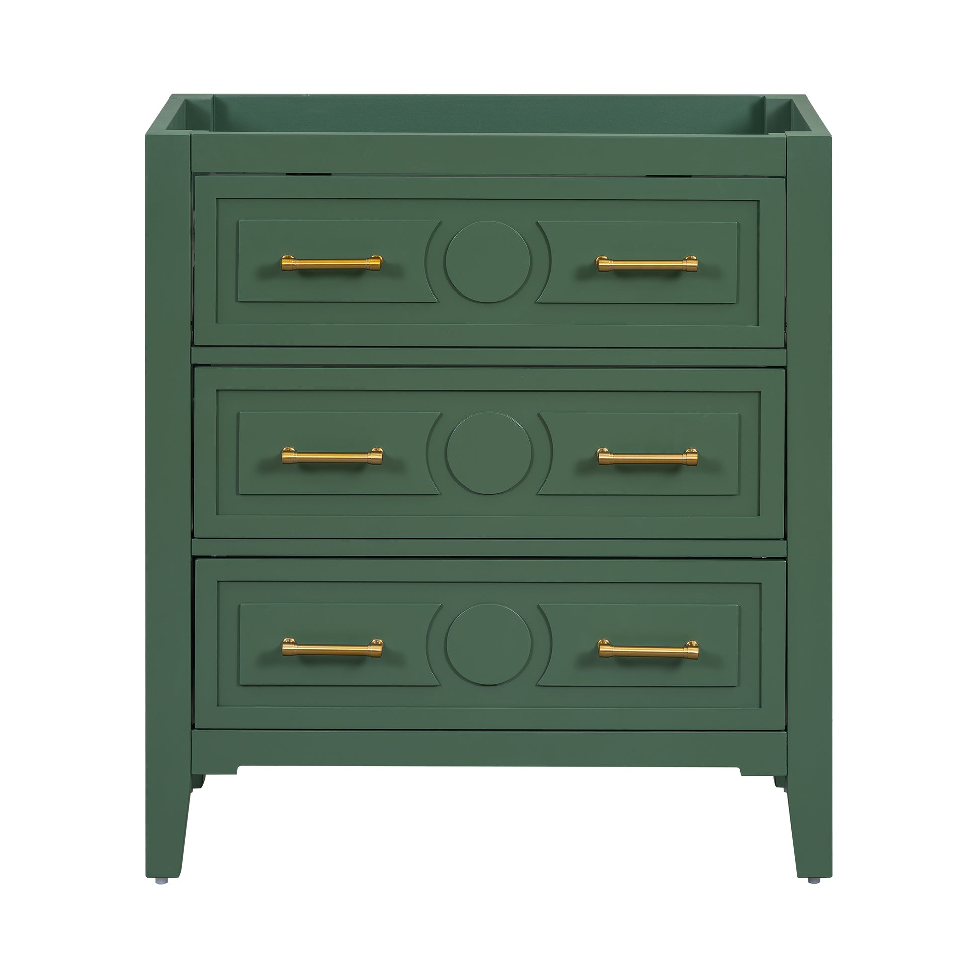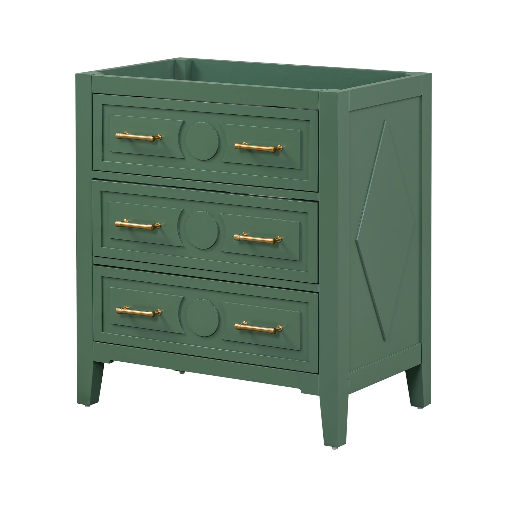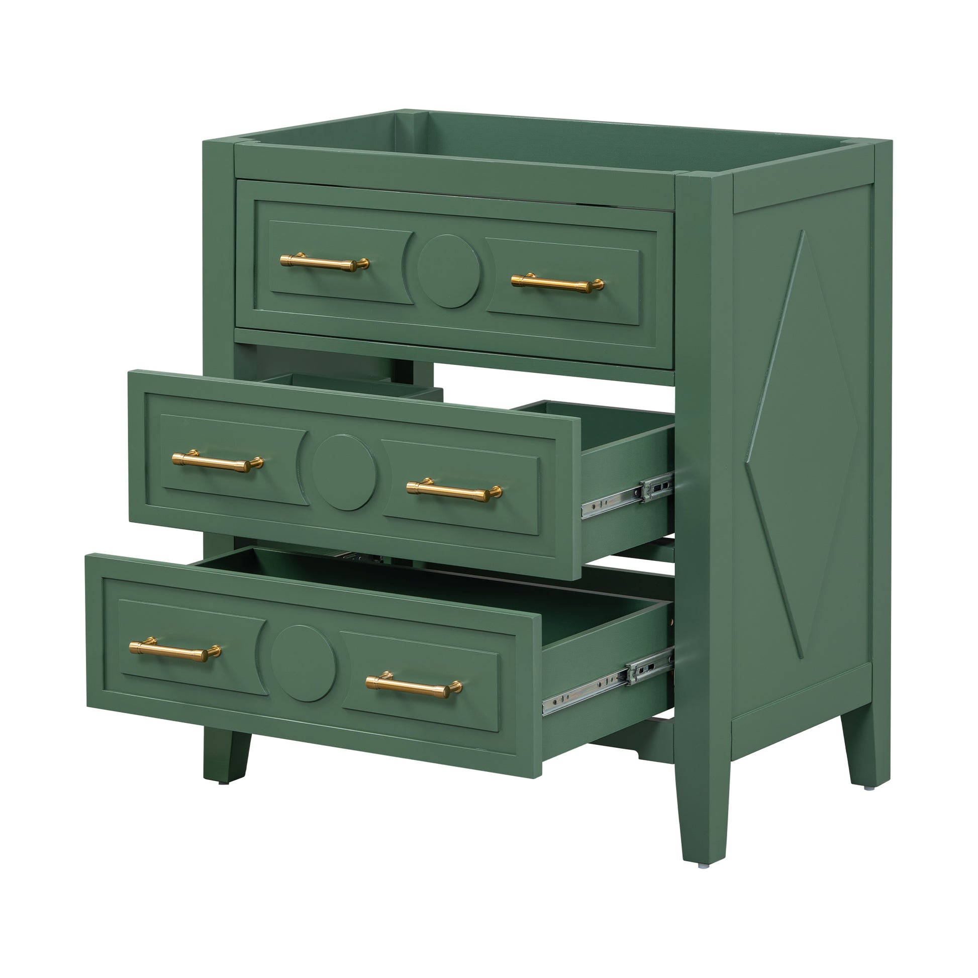 30'' Bathroom Vanity Without Basin Sink, Free Standing Single Vanity With 3 Drawers, Solid Wood Frame Bathroom Storage Cabinet, Green 3 Green Bathroom Freestanding Solid Wood Mdf Painted