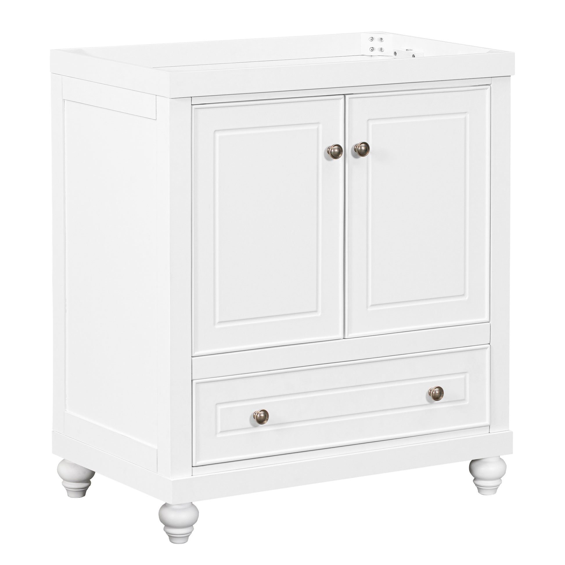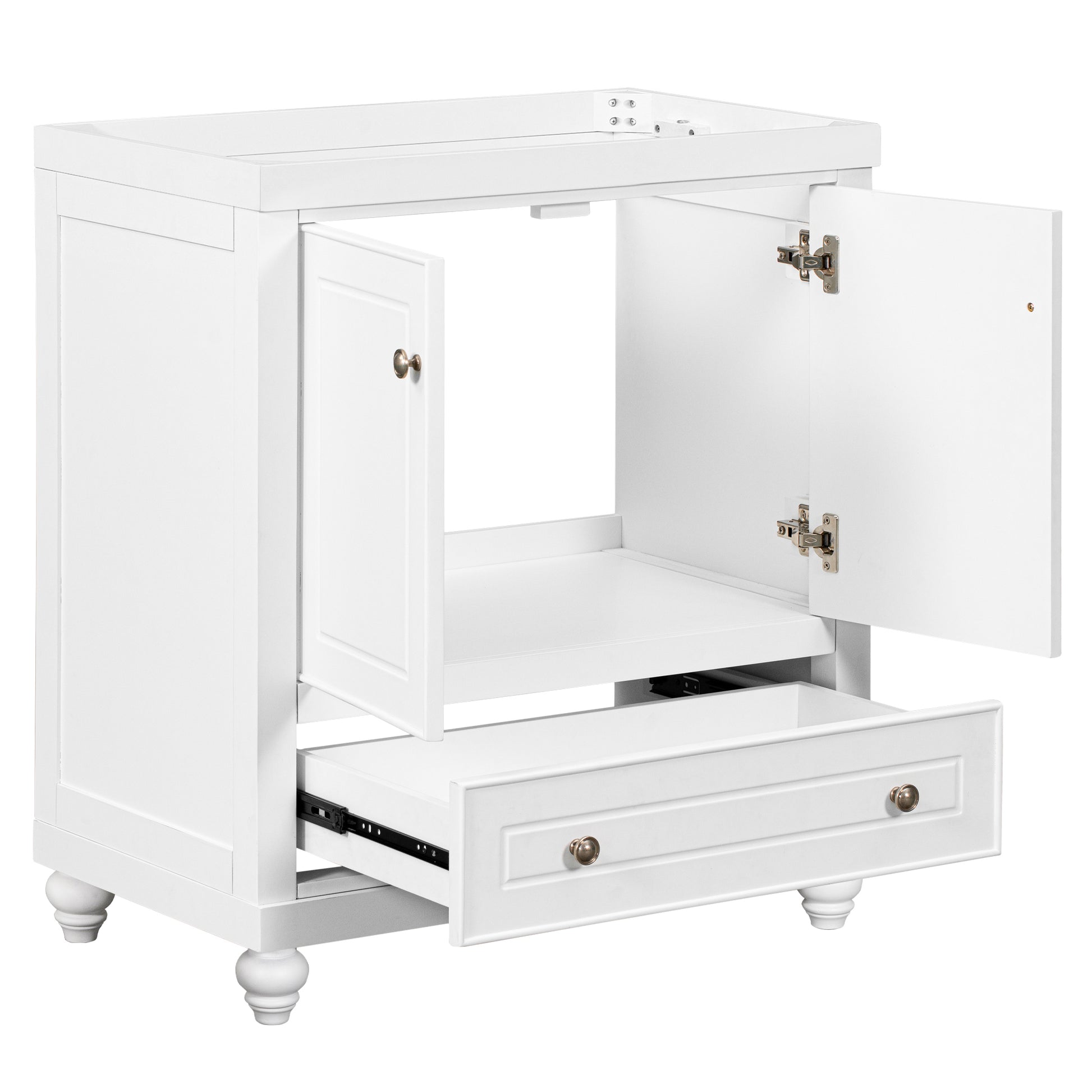 30" Bathroom Vanity Without Sink, Base Only, Cabinet With Doors And Drawer, Solid Frame And Mdf Board, White White Solid Wood Mdf