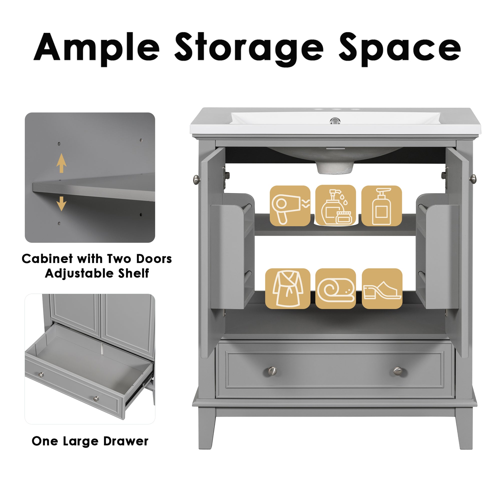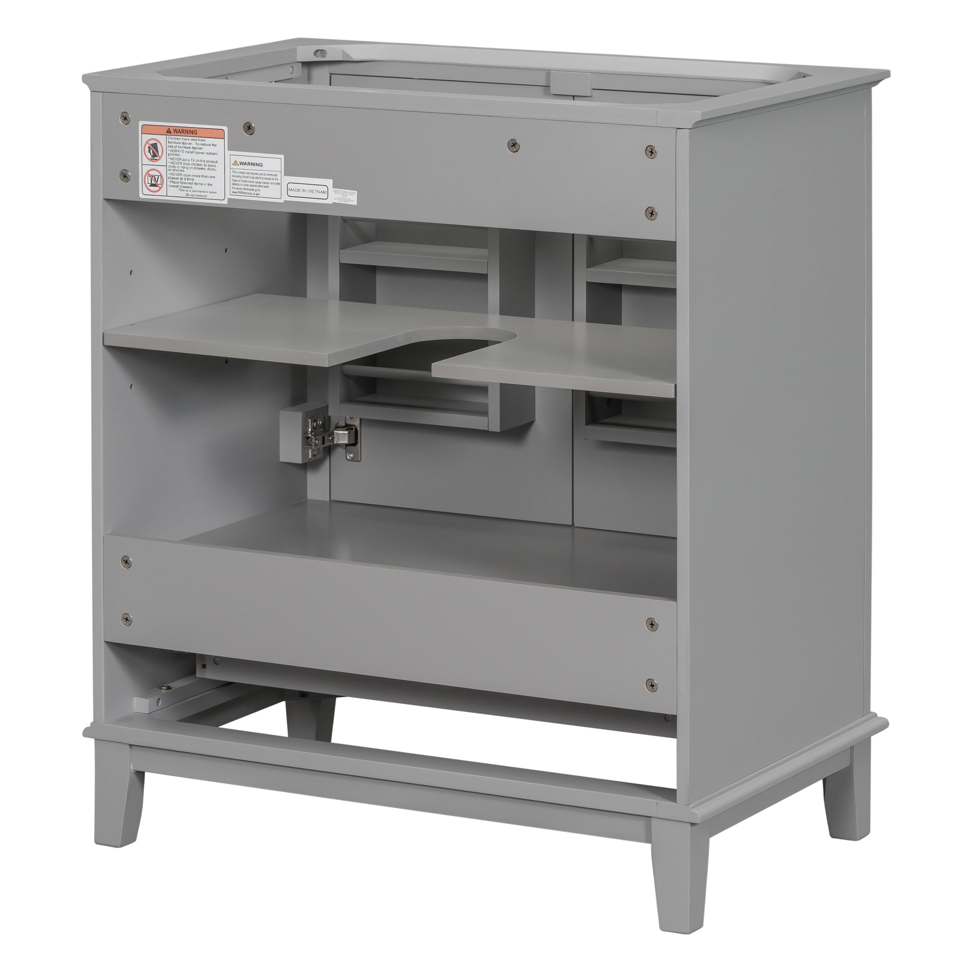 30" Bathroom Vanity Without Sink, Base Only, Multi Functional Bathroom Cabinet With Doors And Drawer, Solid Frame And Mdf Board, Grey Grey Solid Wood Mdf
