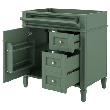 30'' Bathroom Vanity Without Top Sink, Modern Bathroom Storage Cabinet With 2 Drawers And A Tip Out Drawer Not Include Basin 3 Green 1 Adjustable Hinges Bathroom Freestanding Solid Wood Mdf Painted