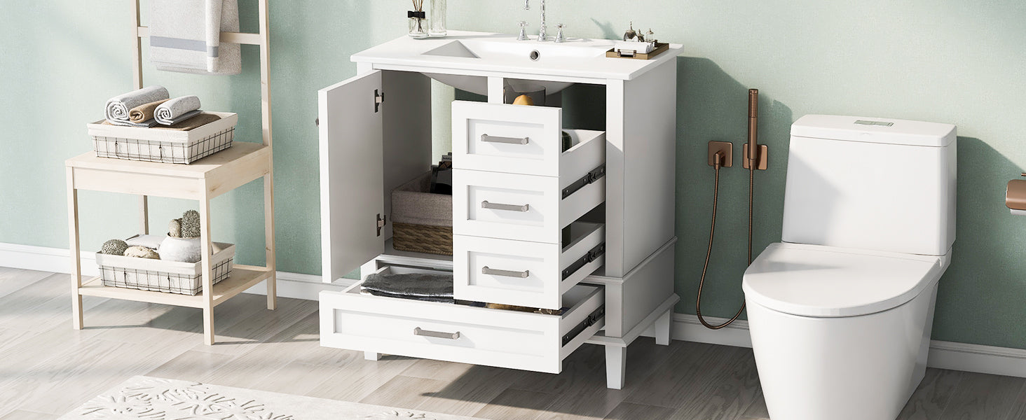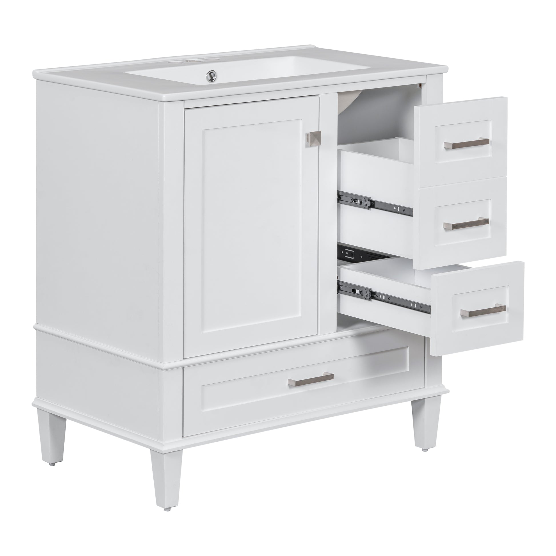 30" Bathroom Vanitymodern Bathroom Cabinet With Sink Combo Set, Bathroom Storage Cabinet With A Soft Closing Door And 3 Drawers, Solid Wood Frame White White Bathroom Solid Wood Mdf